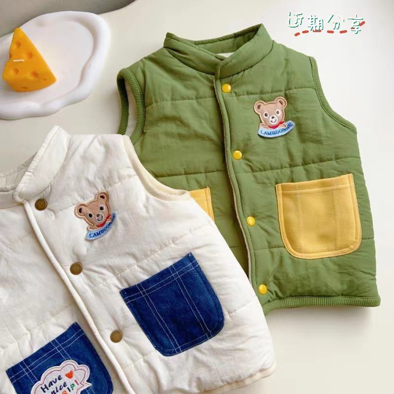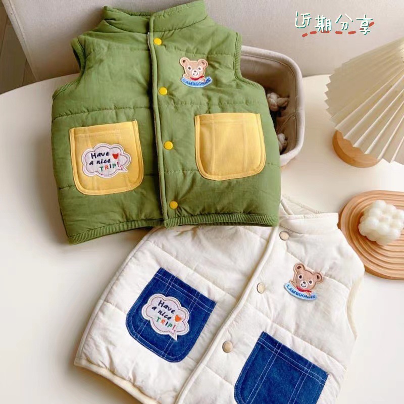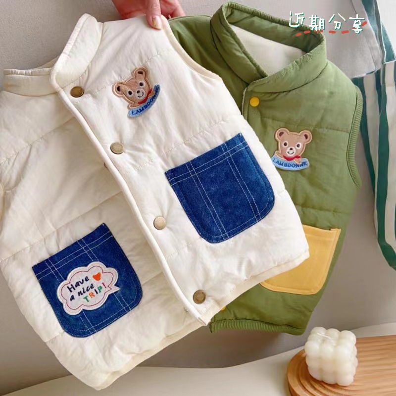 어린이 조끼 가을과 겨울 새 기모 코튼 아기 두꺼운 따뜻한 수직 칼라 디자인 조끼 아기 소년과 소녀 웨이스트 코트스토어 가기
