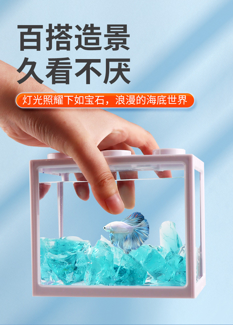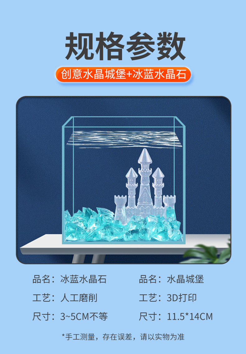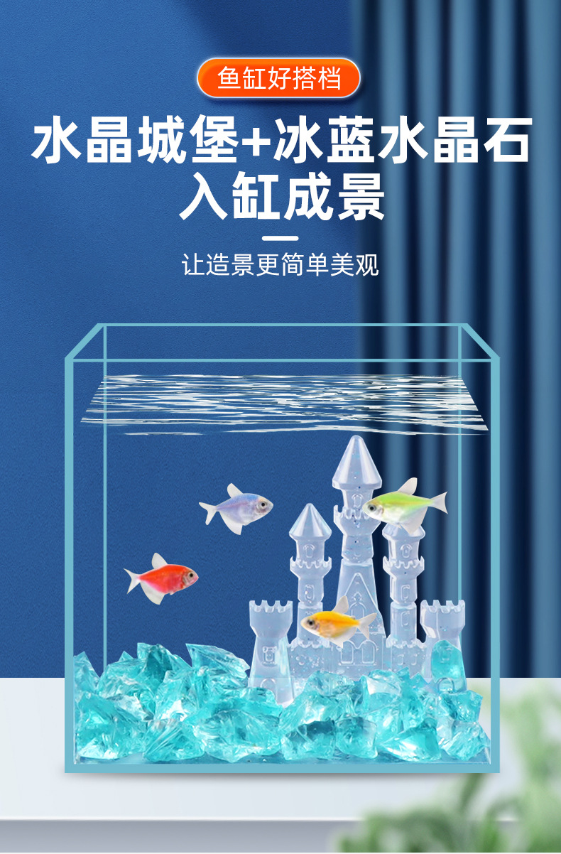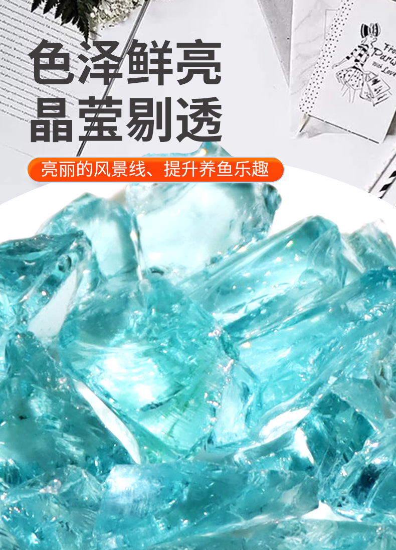 아이스 블루 유리 크리스탈 스톤 데스크탑 장식용 버킷 물고기 탱크 장식 창조적 인 수족관 세트 상점 바닥 돌 장식품