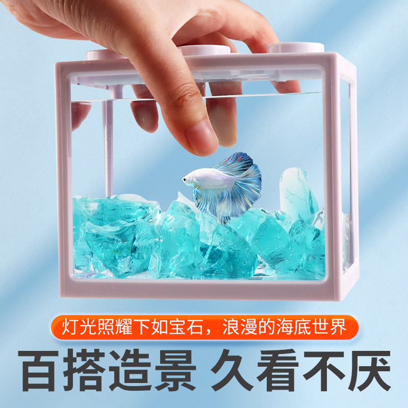 아이스 블루 유리 크리스탈 스톤 데스크탑 장식용 버킷 물고기 탱크 장식 창조적 인 수족관 세트 상점 바닥 돌 장식품스토어 가기