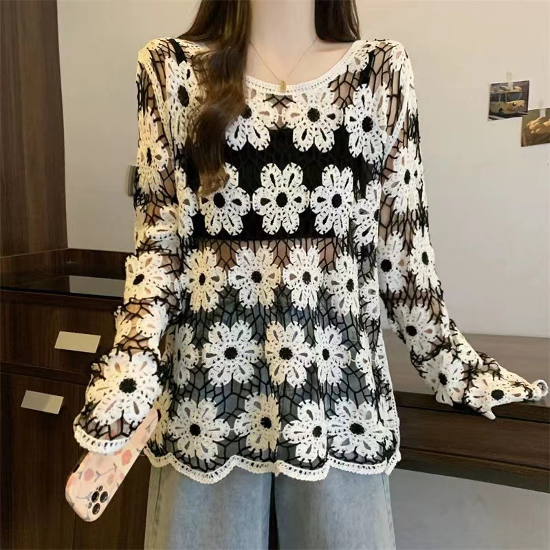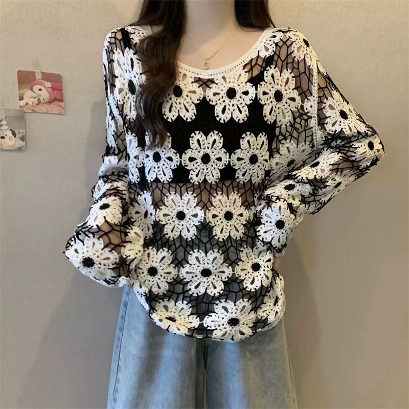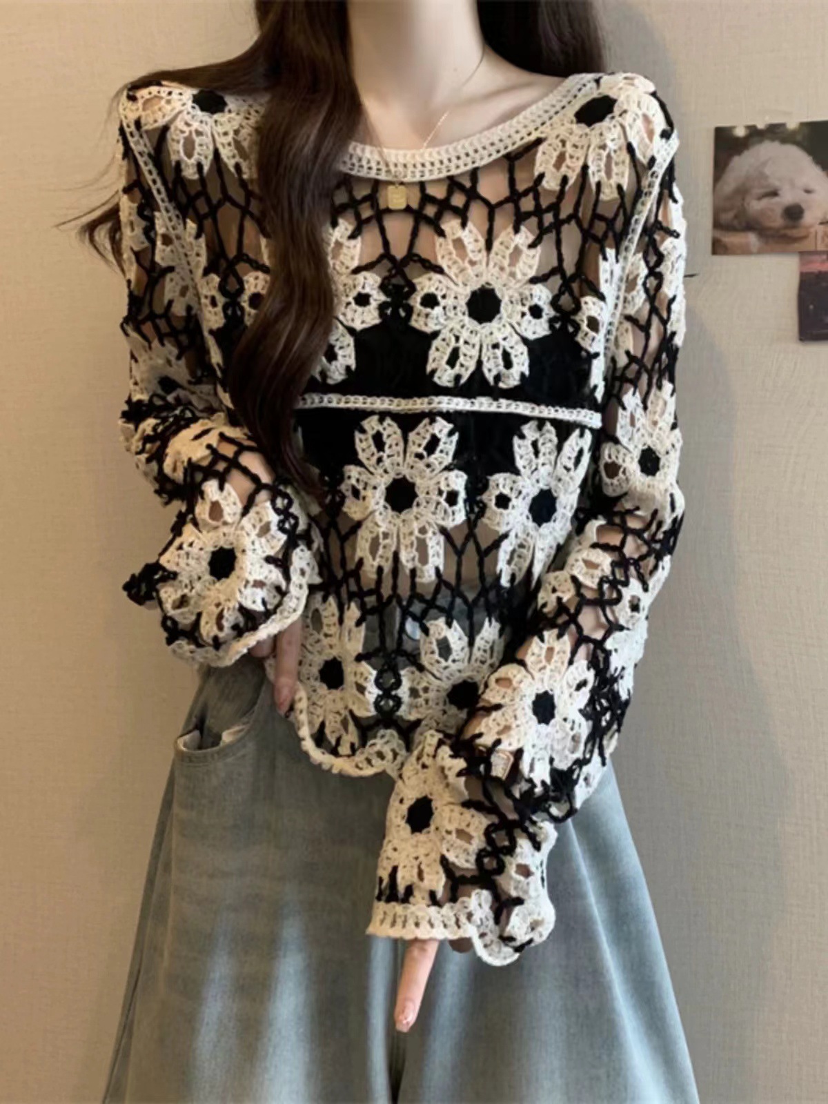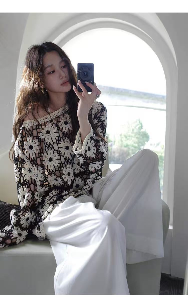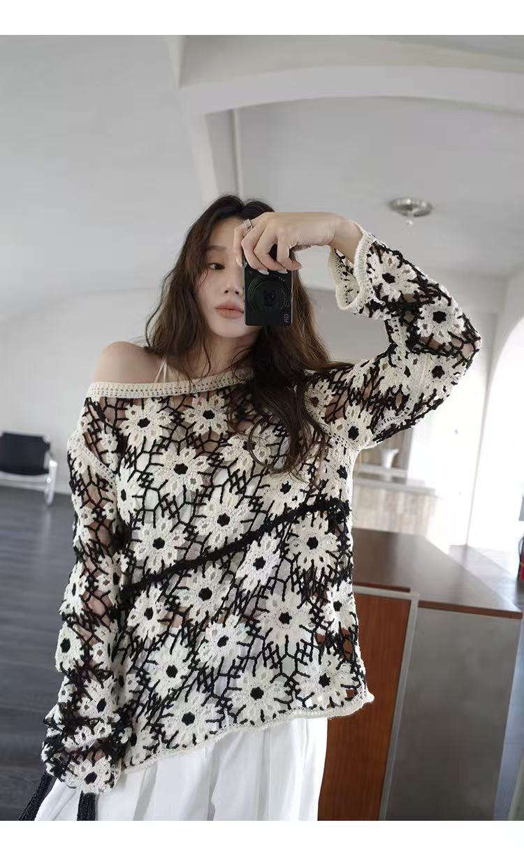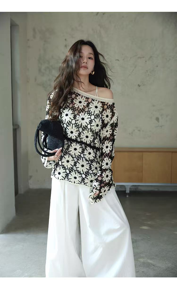 2025 가을 신상 디자인 감각적인 여성용 라운드넥 니트 스웨터, 루즈핏, 패턴 자수, 슬림핏스토어 가기