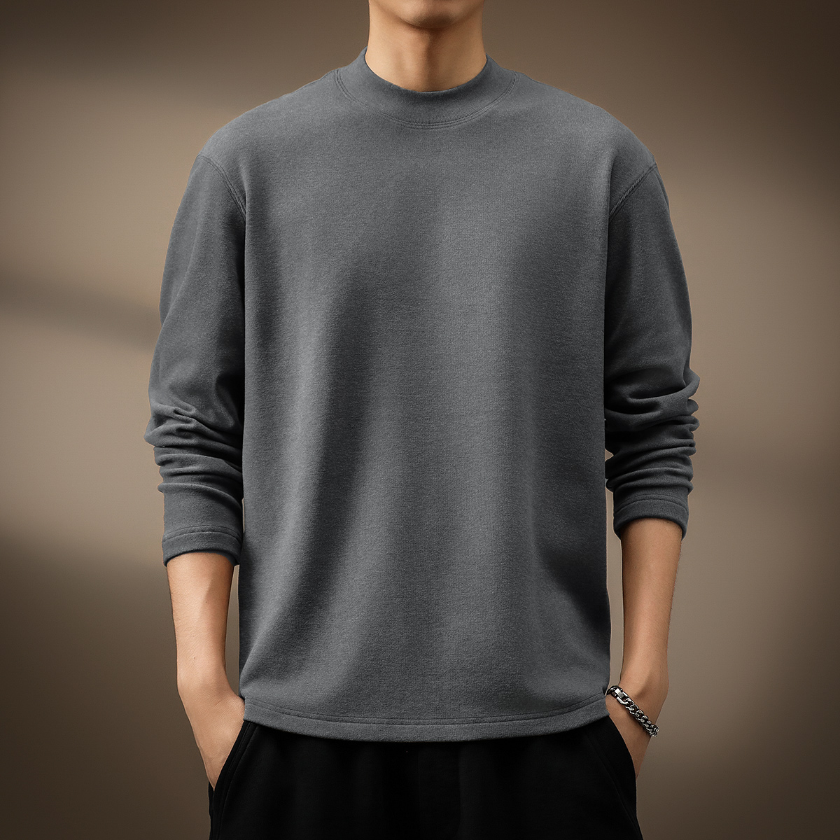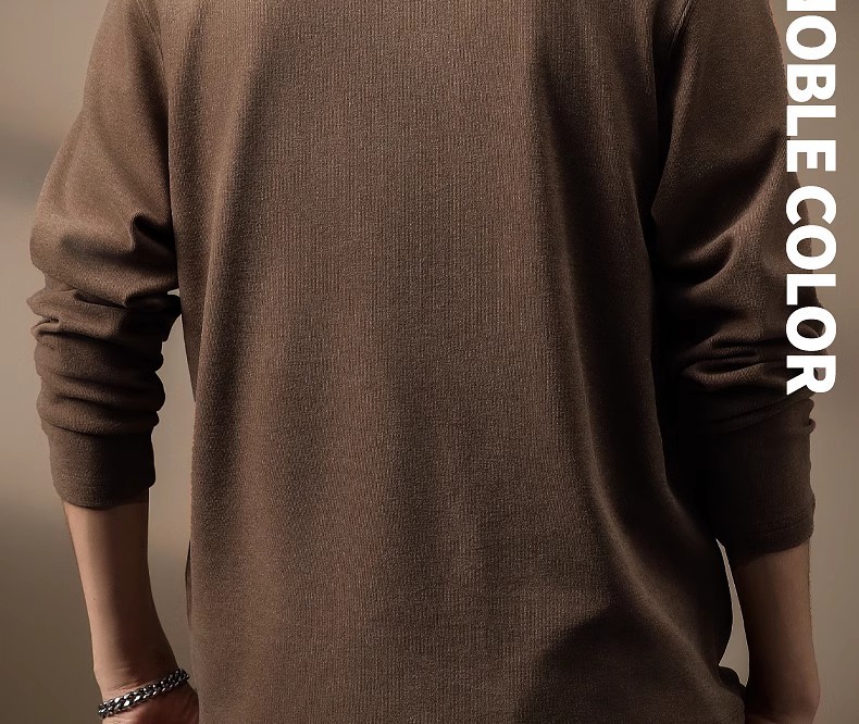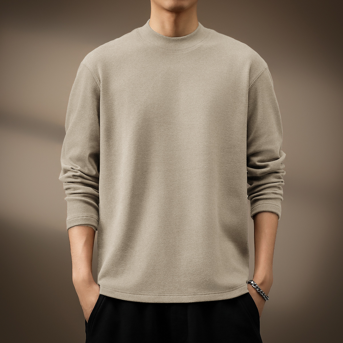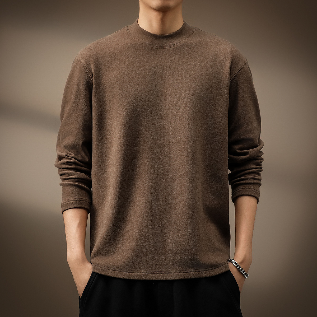 하이 엔드 독일 벨벳 가열 패브릭 긴팔 티셔츠 남성용 가을 인테리어 단색 세미 하이 칼라 기본 따뜻한베이스 셔츠