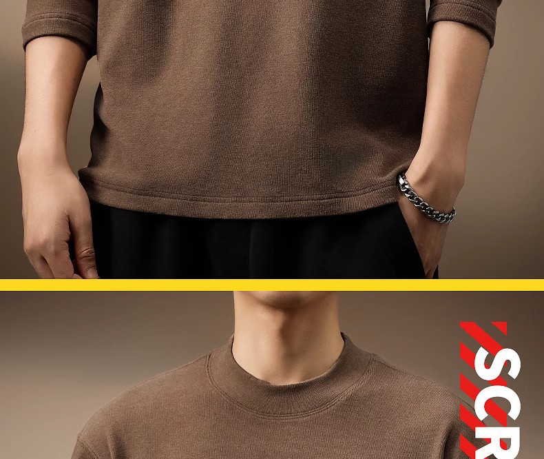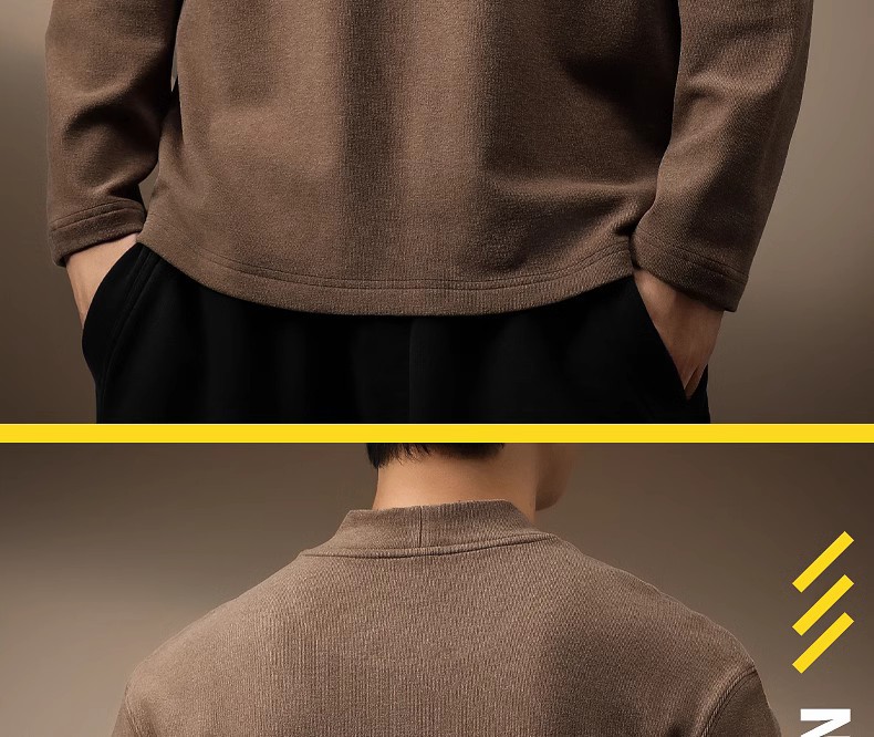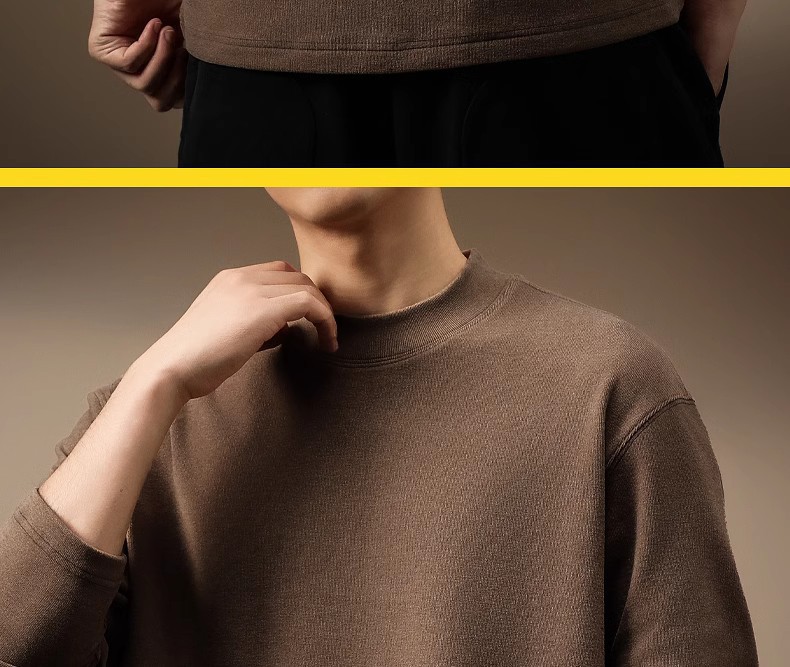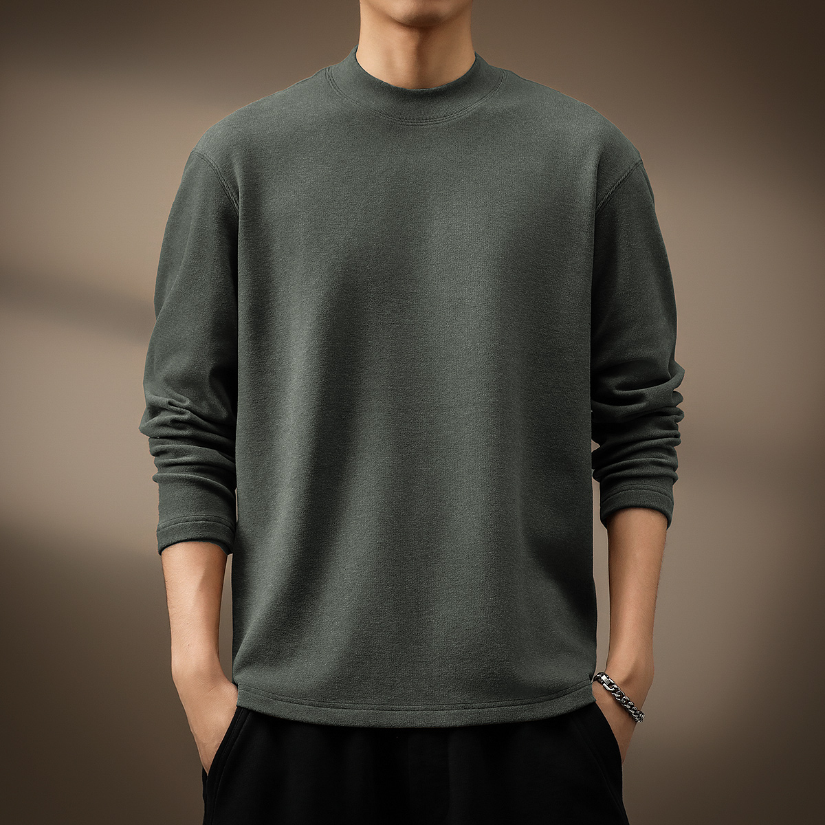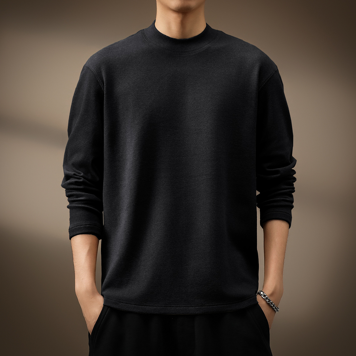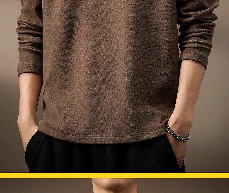 하이 엔드 독일 벨벳 가열 패브릭 긴팔 티셔츠 남성용 가을 인테리어 단색 세미 하이 칼라 기본 따뜻한베이스 셔츠