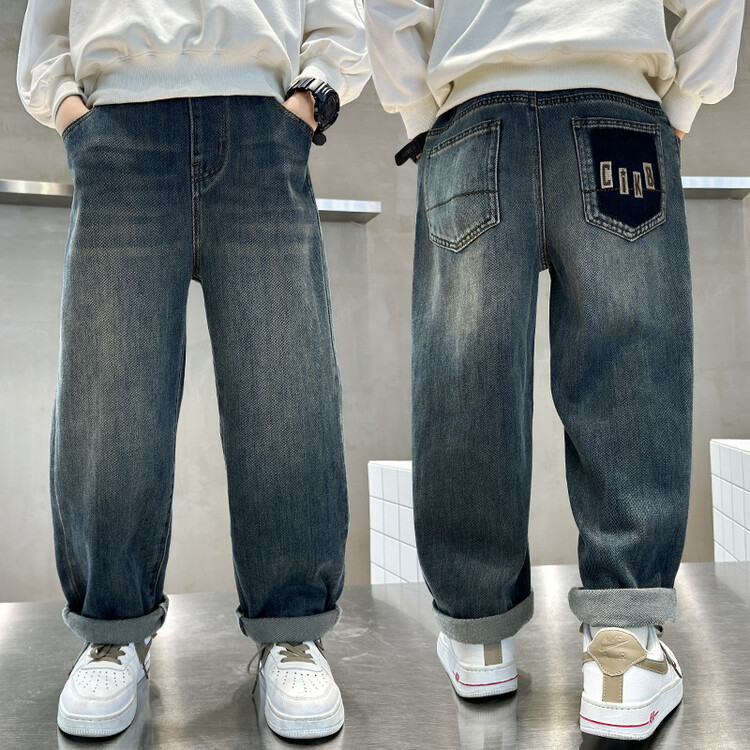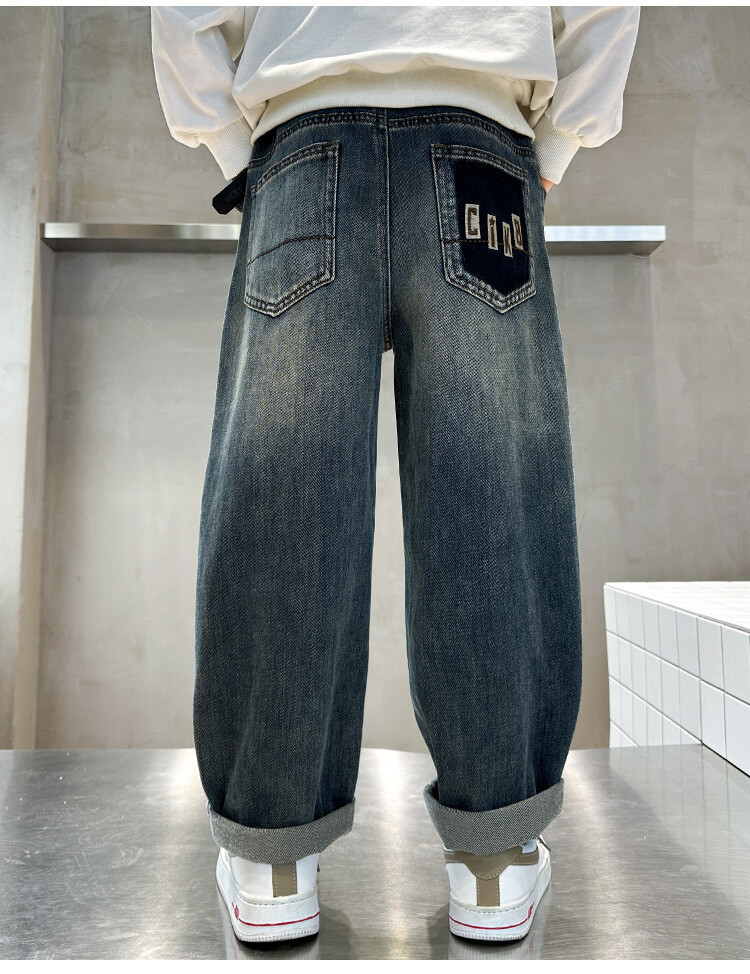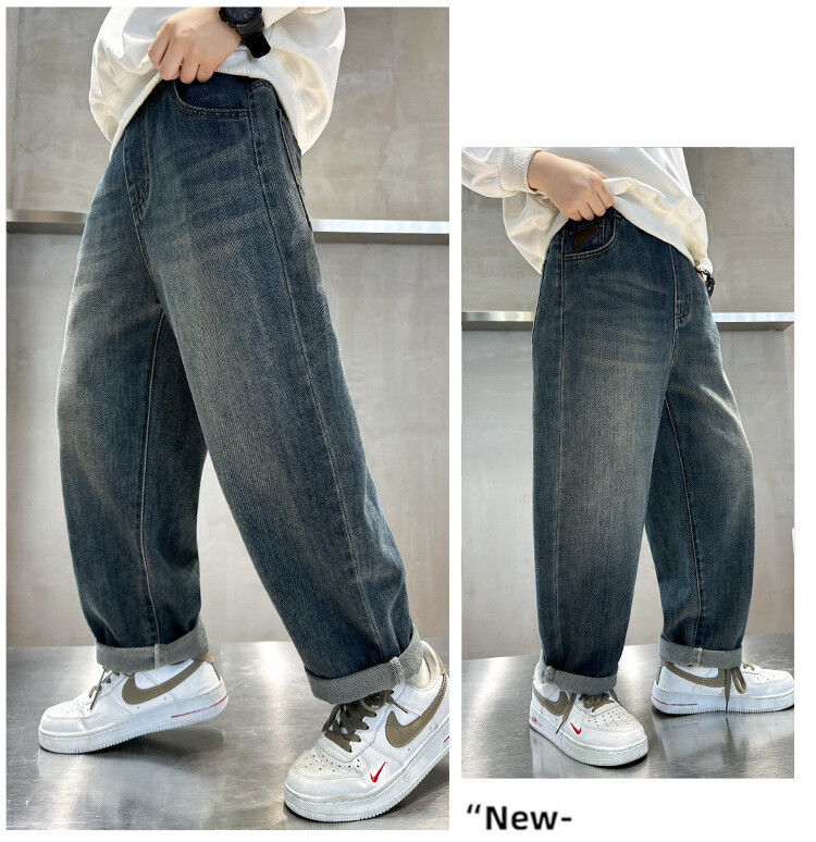 소년 가을 청바지 유행 한국 스타일 큰 어린이 스트레이트 바지 캐주얼 느슨한 어린이 봄과 가을 바지 AliExpress