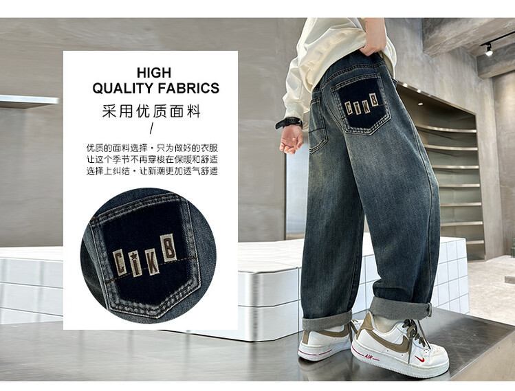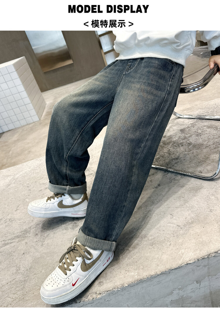 소년 가을 청바지 유행 한국 스타일 큰 어린이 스트레이트 바지 캐주얼 느슨한 어린이 봄과 가을 바지 AliExpress스토어 가기