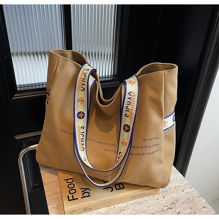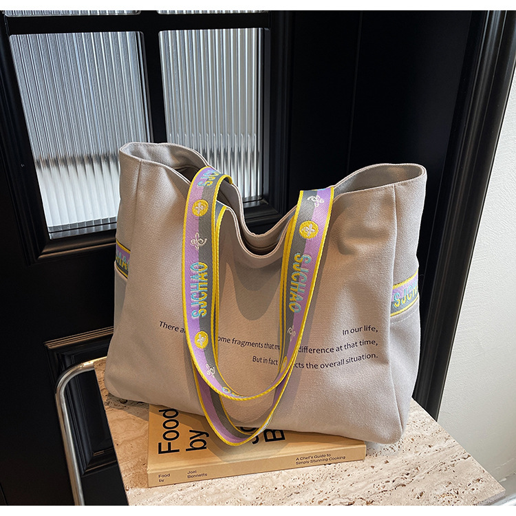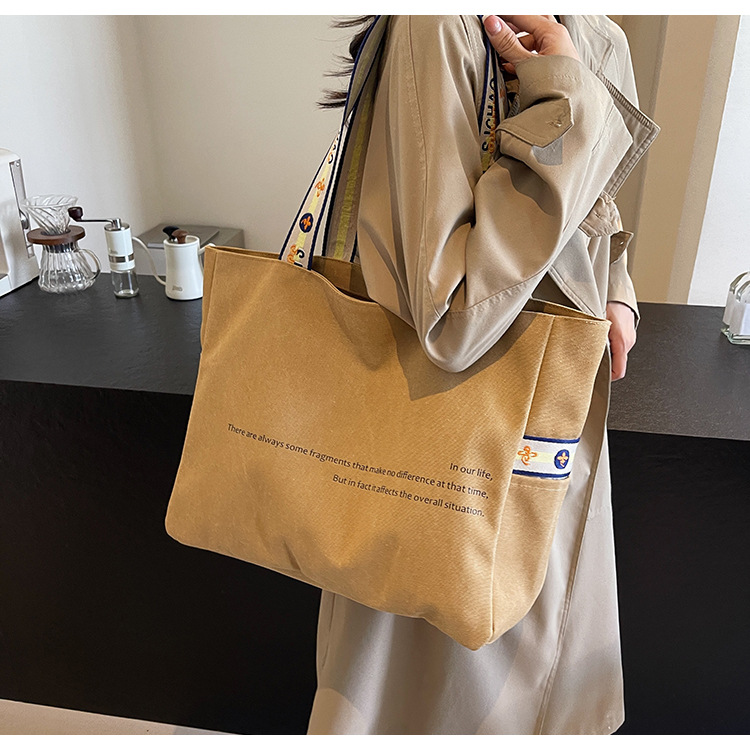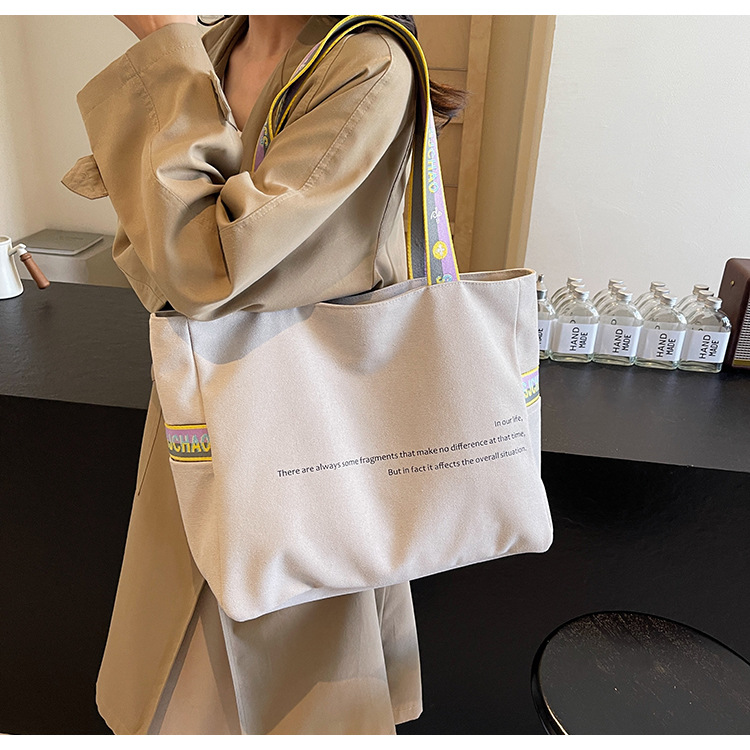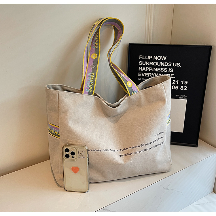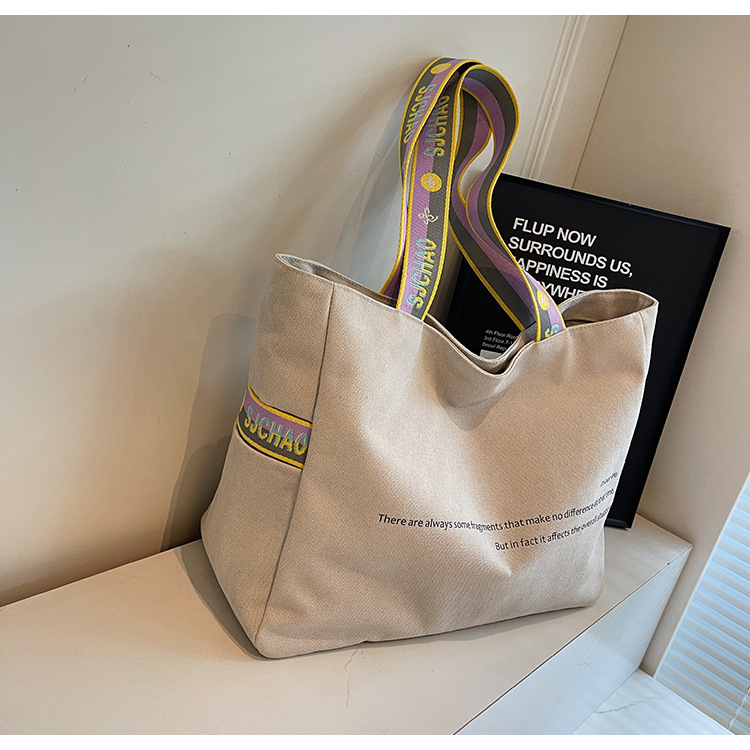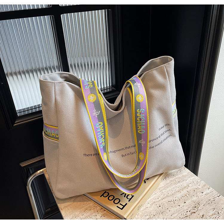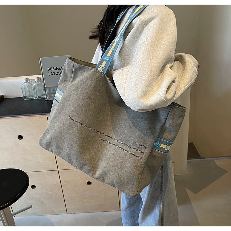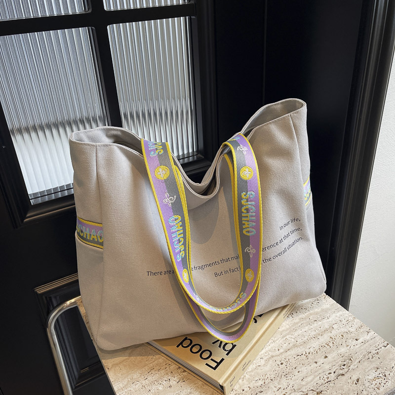 대용량 캔버스 가방 여성의 가을과 겨울 올 매치 2024 새로운 스타일 캐주얼 어깨 가방 간단한 클래스 통근 토트 백