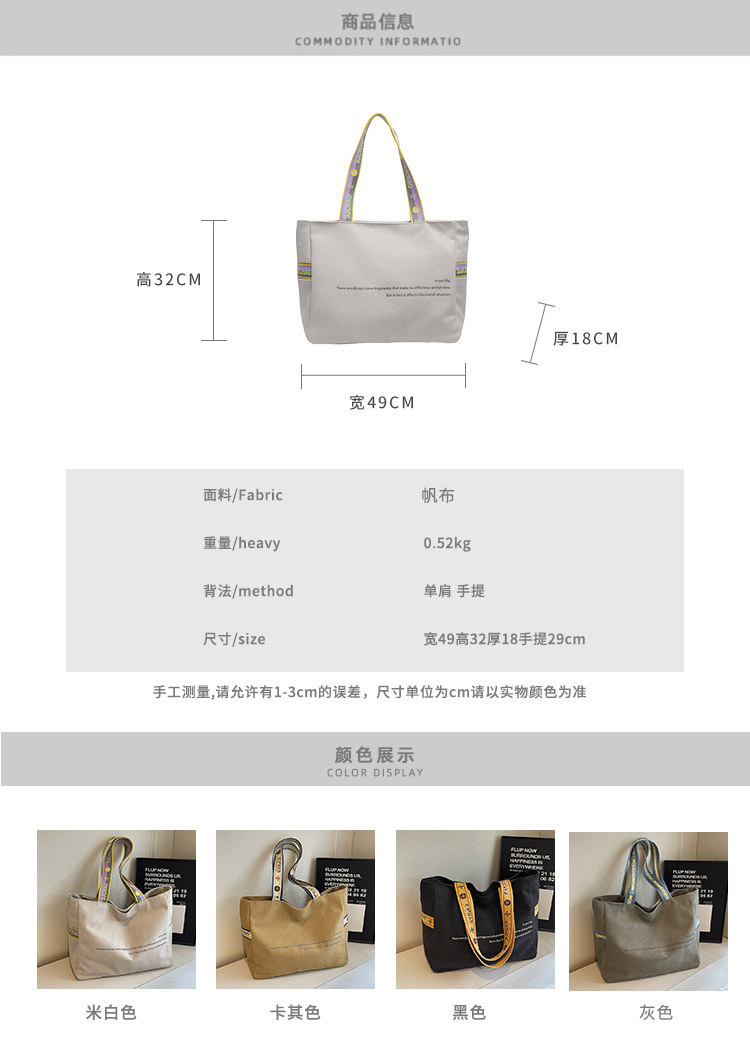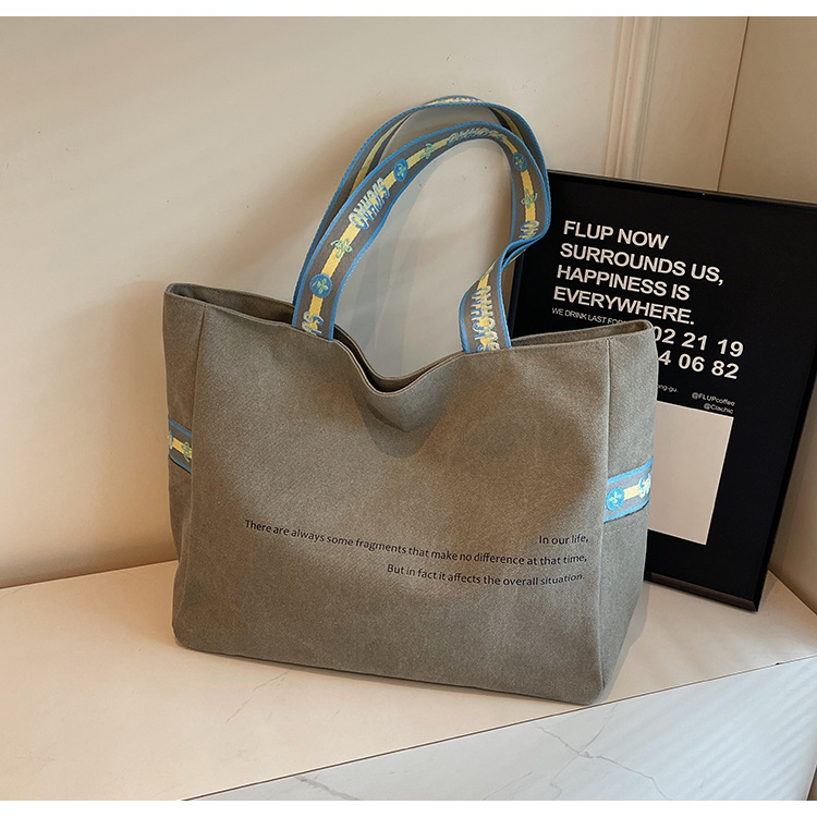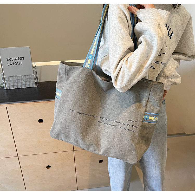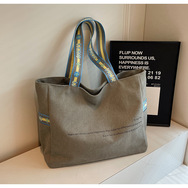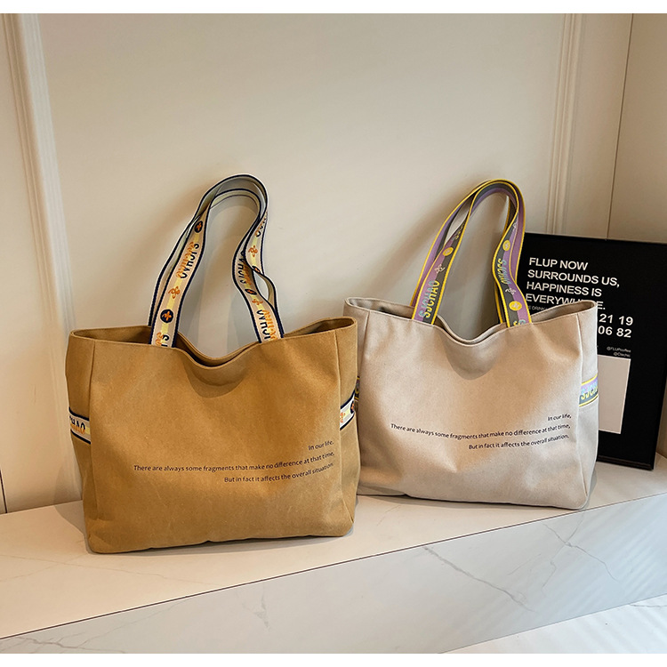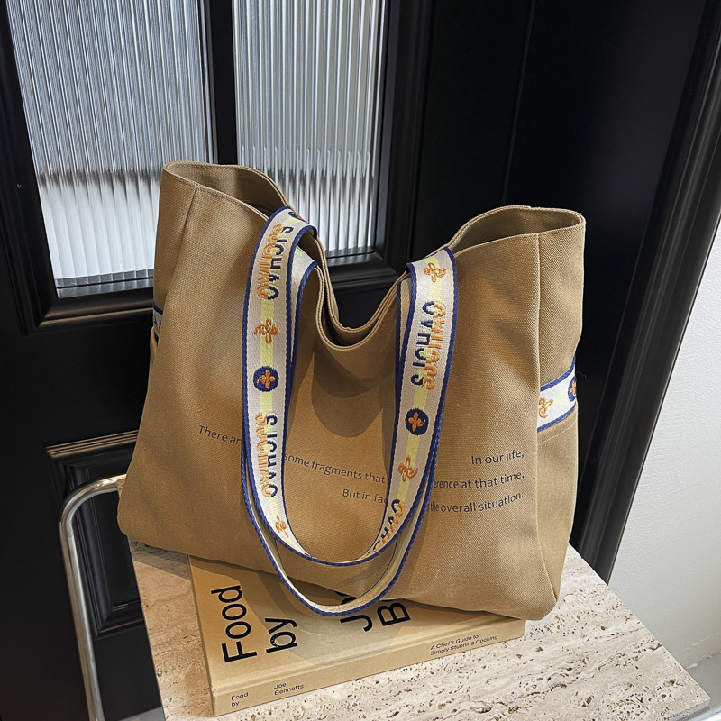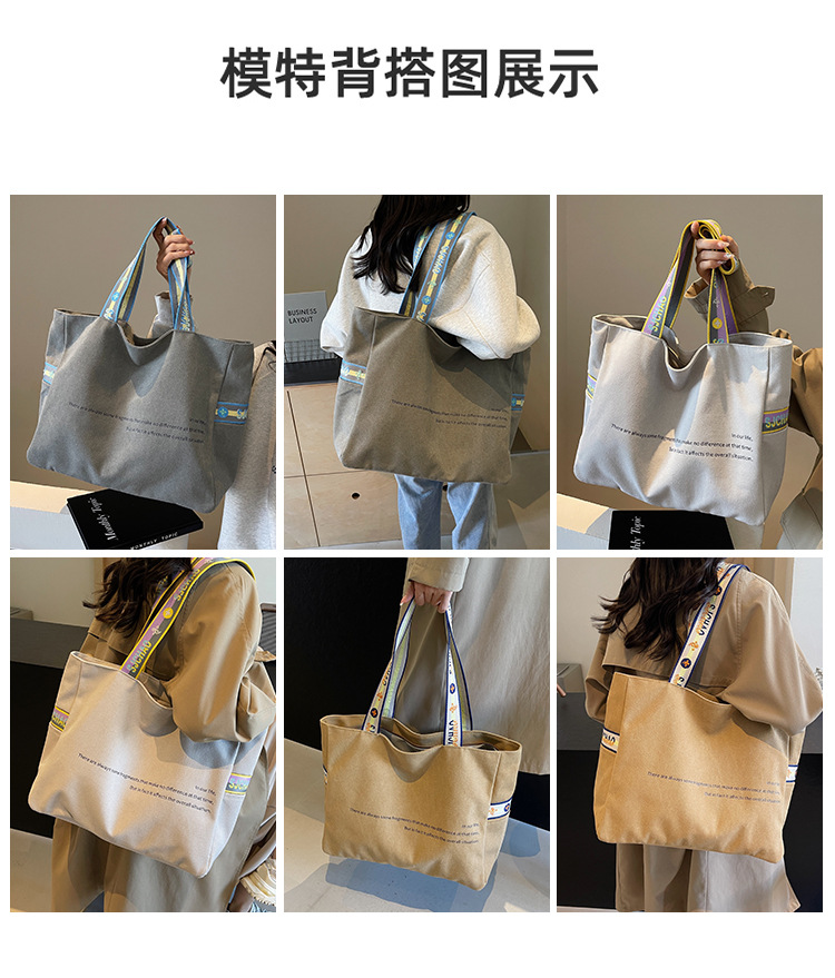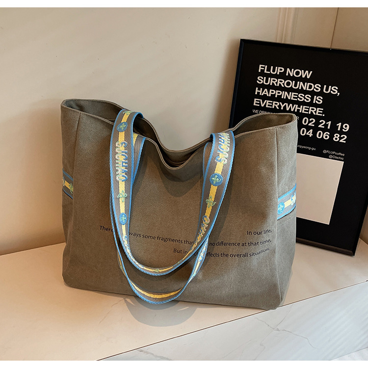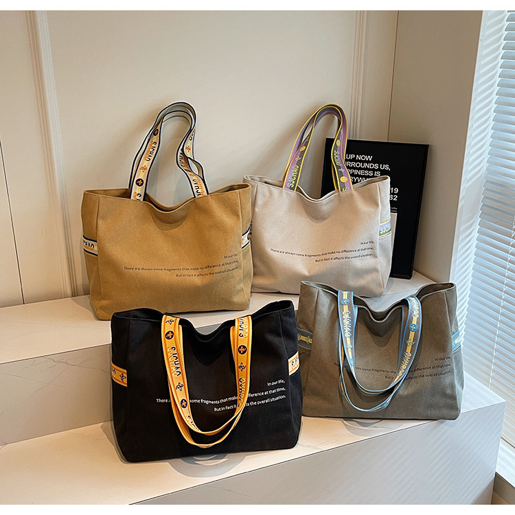 대용량 캔버스 가방 여성의 가을과 겨울 올 매치 2024 새로운 스타일 캐주얼 어깨 가방 간단한 클래스 통근 토트 백