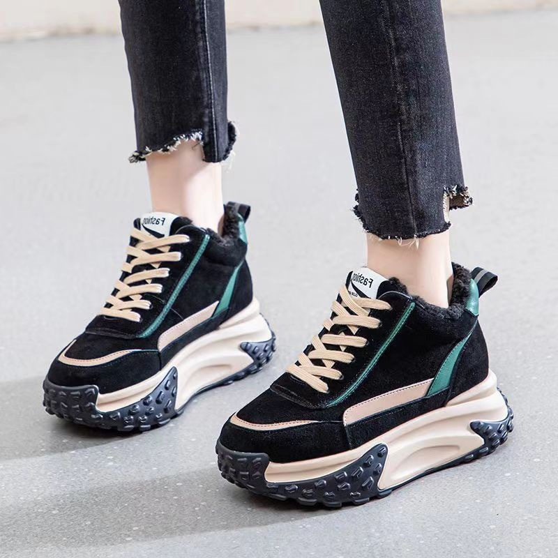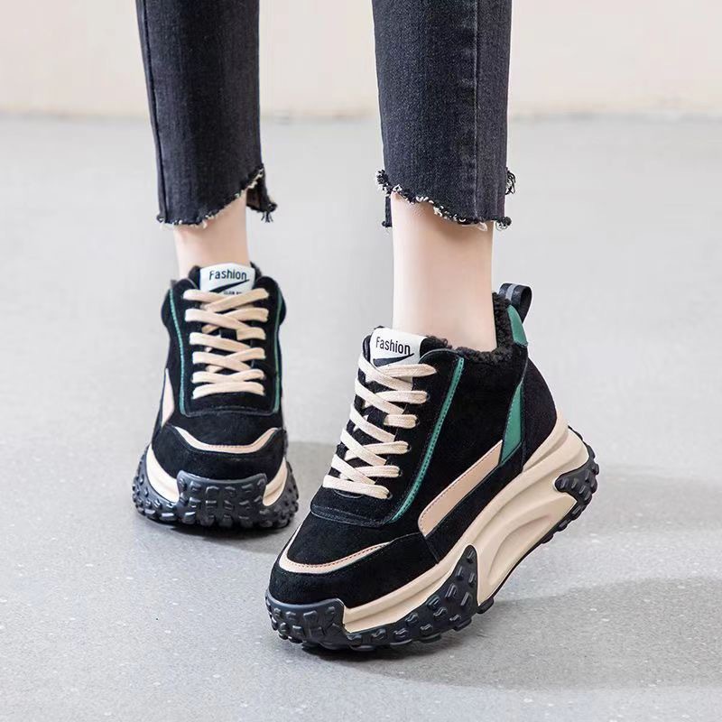 인터넷 연예인 두꺼운 바닥 스포츠 스노우 부츠 여성 기모 코튼 슈즈 2024 새로운 올 매치 겨울 캐주얼 토르 슈즈 트렌드스토어 가기