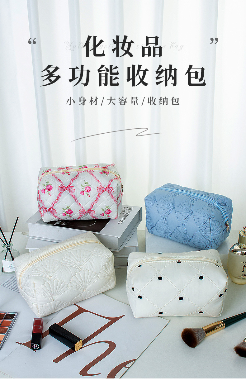 창조적 인 귀여운 화장품 가방 대용량 하이 엔드 센스 코트 스타일 퀼트 저장 가방 휴대용 소프트 작은 크라우드 백
