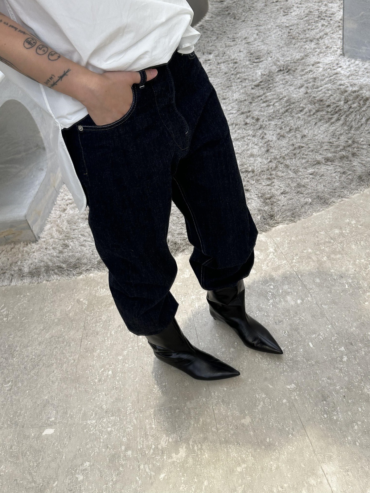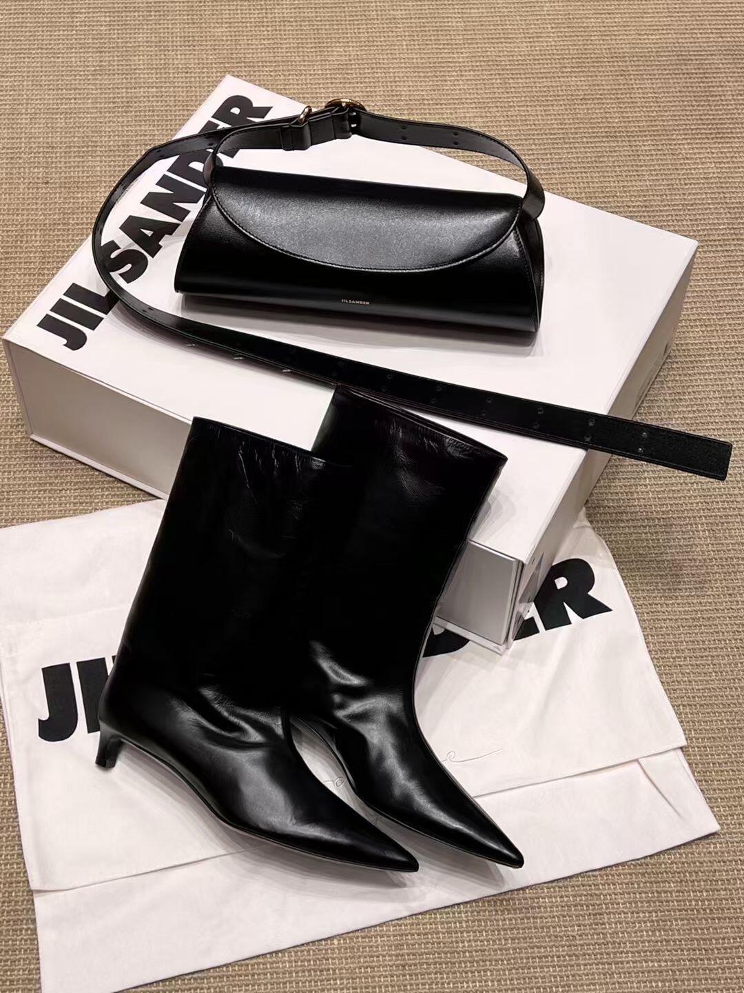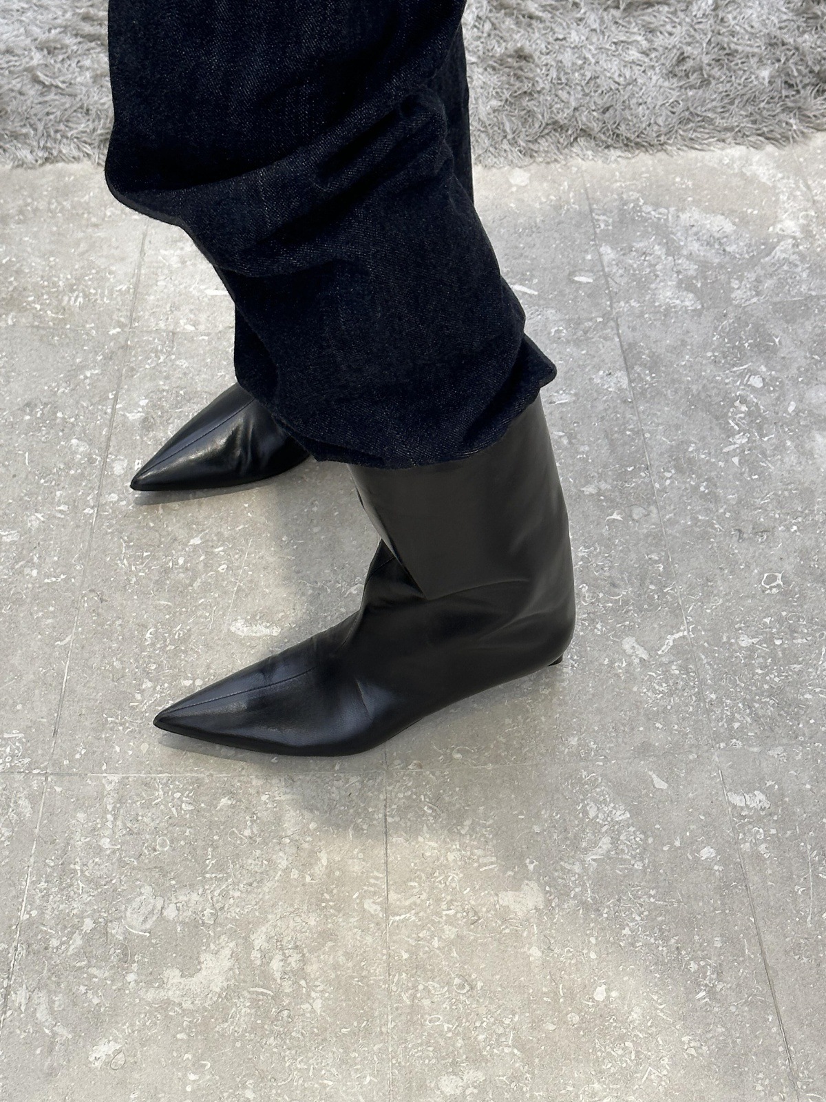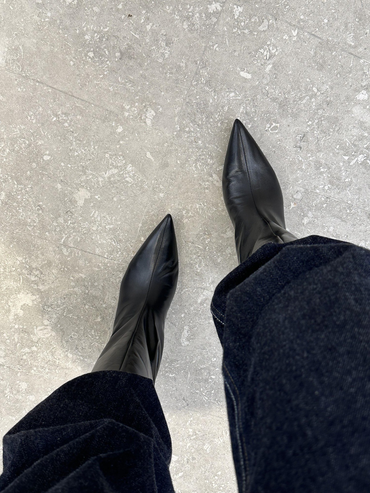 신헝잔~세련된 부드러운 가죽 뾰족코 하이힐 미들 부츠 여성용 프렌치 스타일 와이드 부츠 앵클 부츠 나이트 부츠 마틴 부츠
