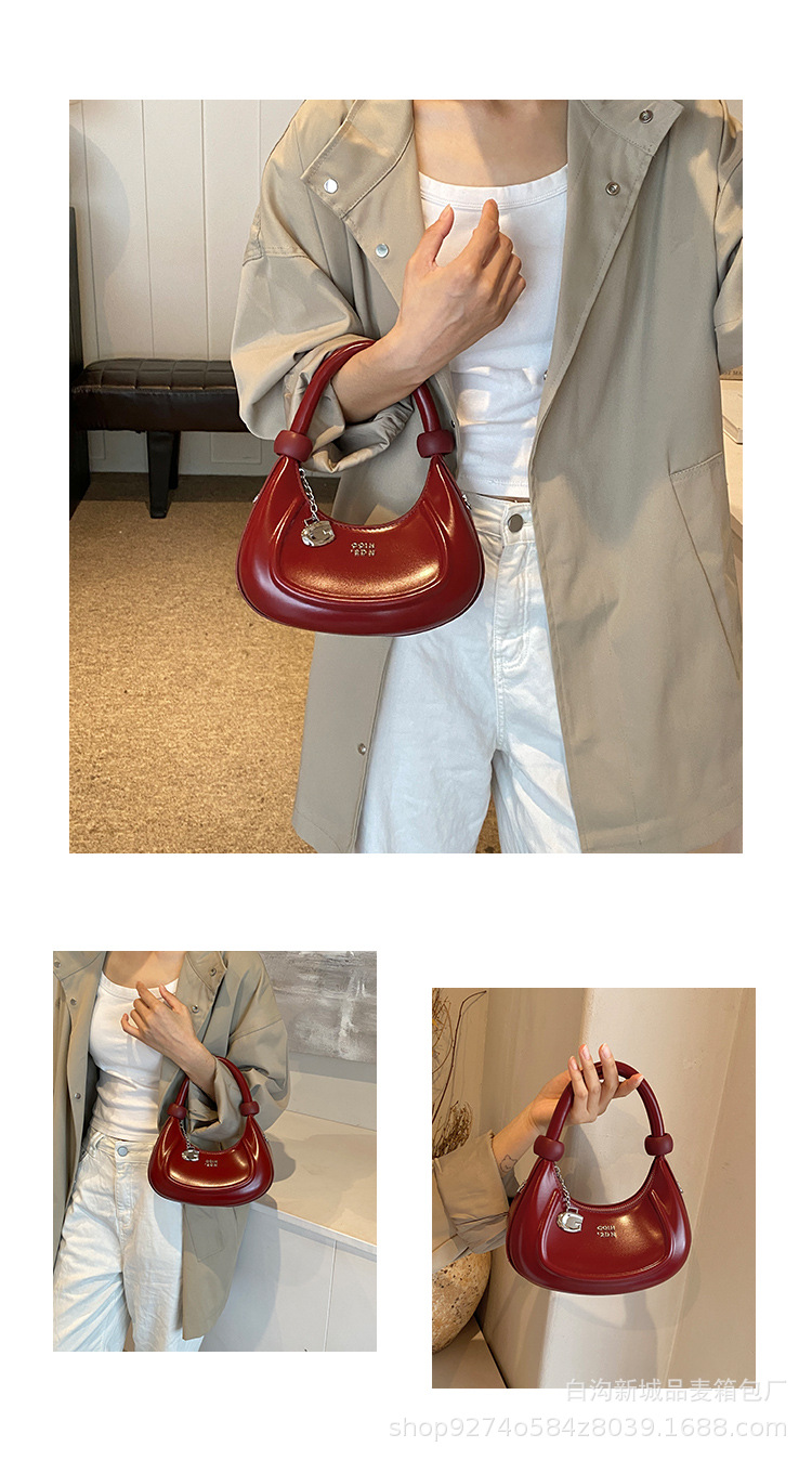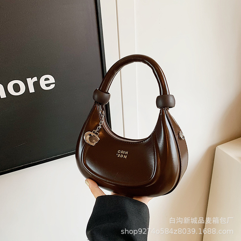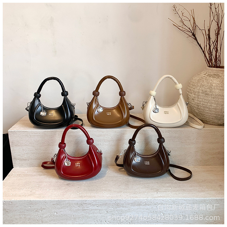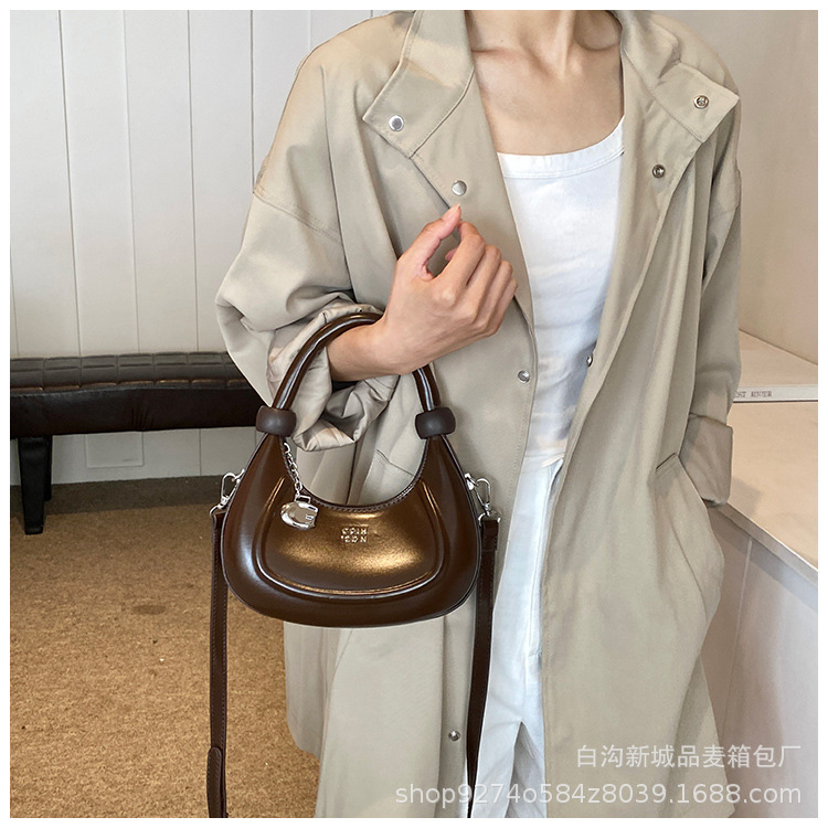 여성용 휴대용 겨드랑이 가방 2025 새로운 국경 간 고급 틈새 복고풍 다용도 싱글 숄더 크로스 바디 초승달 가방