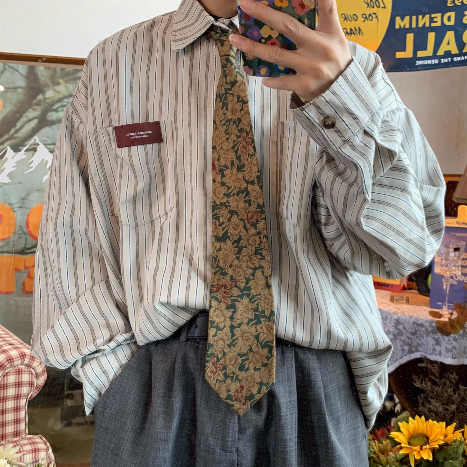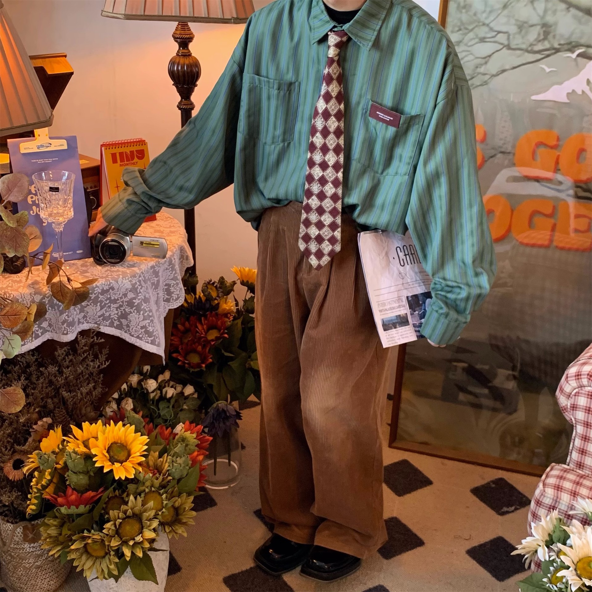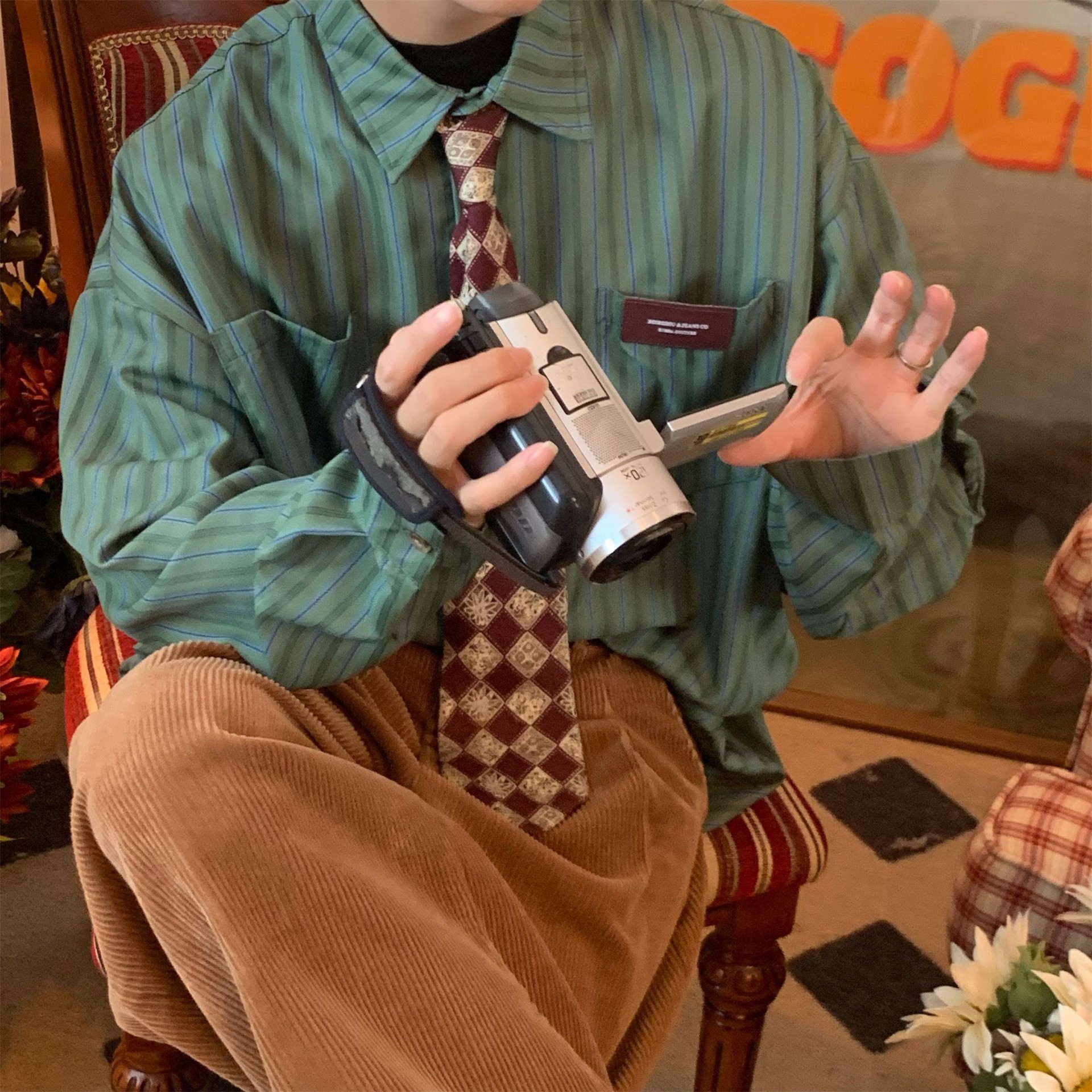 봄과 가을 일본 복고풍 cityboy 긴팔 셔츠 스트라이프 남성 캐주얼 홍콩 스타일 ins 내부 잘 생긴 탑 재킷
