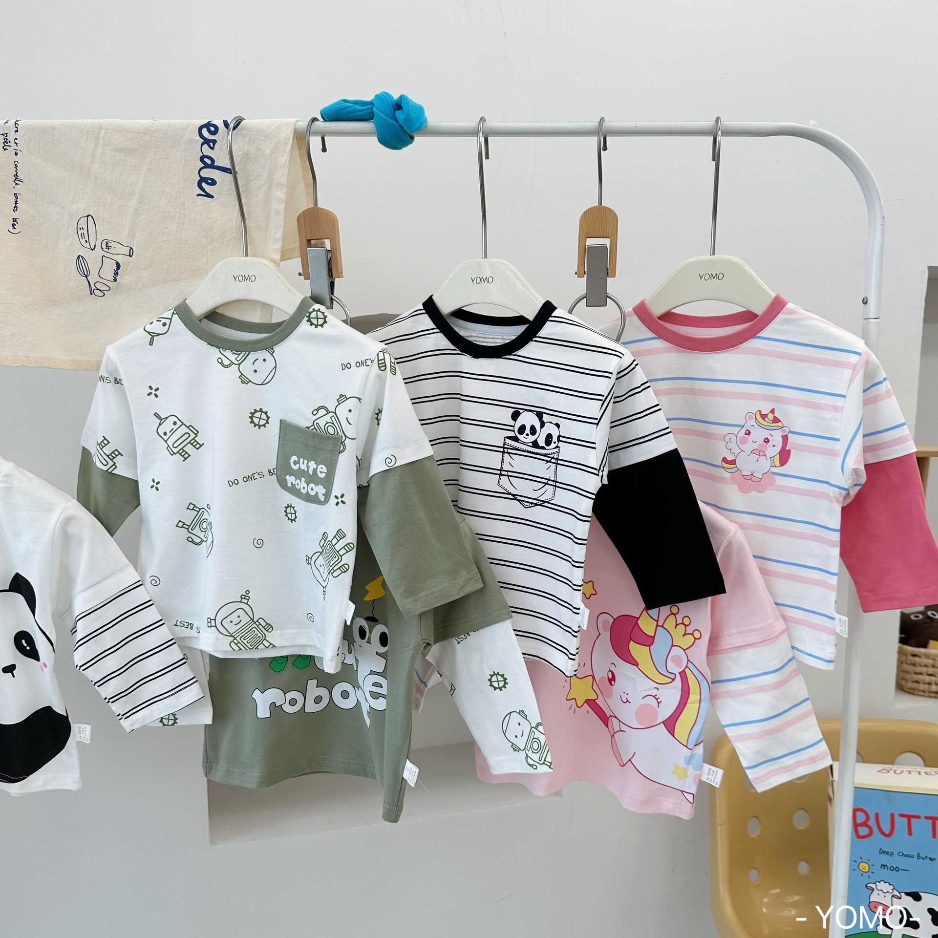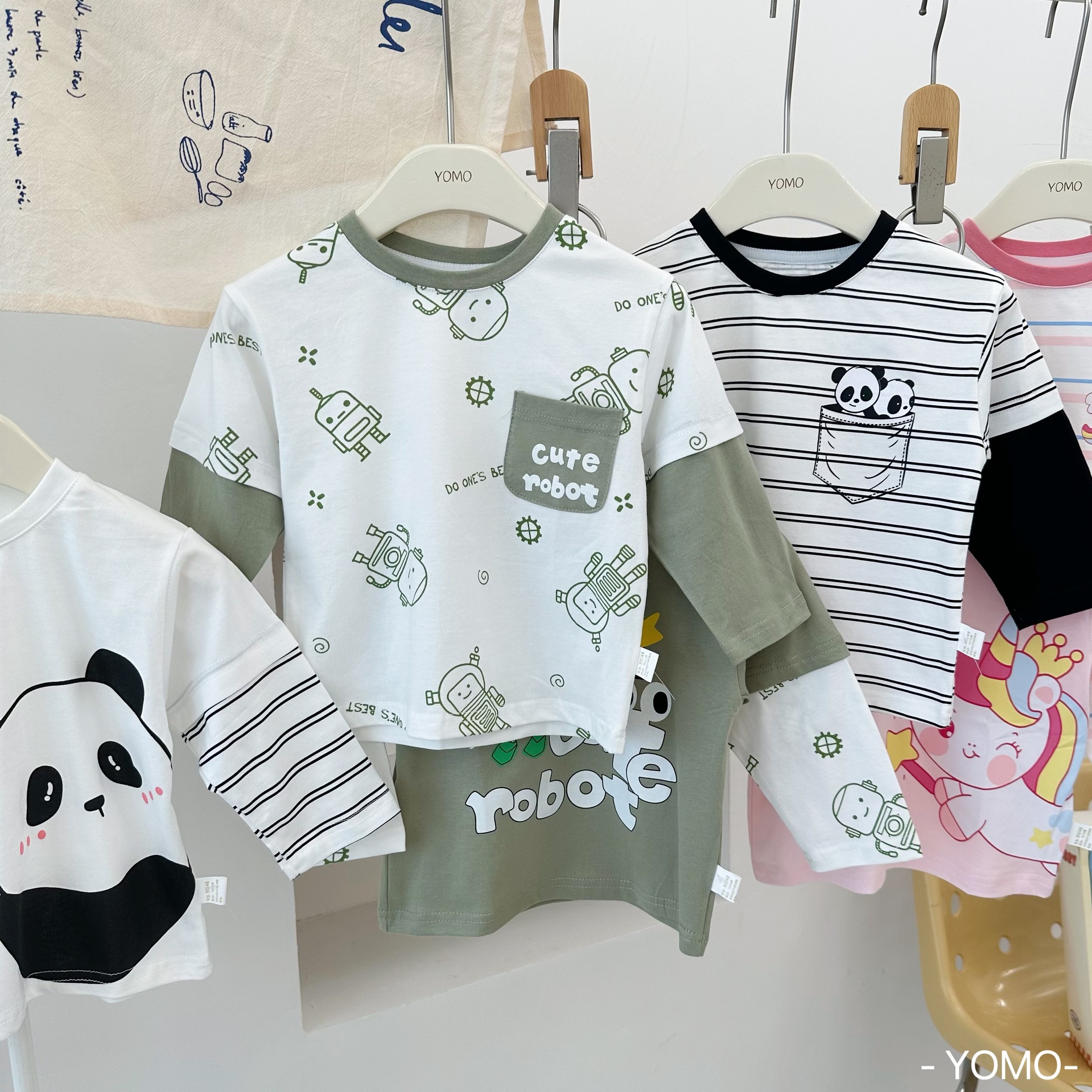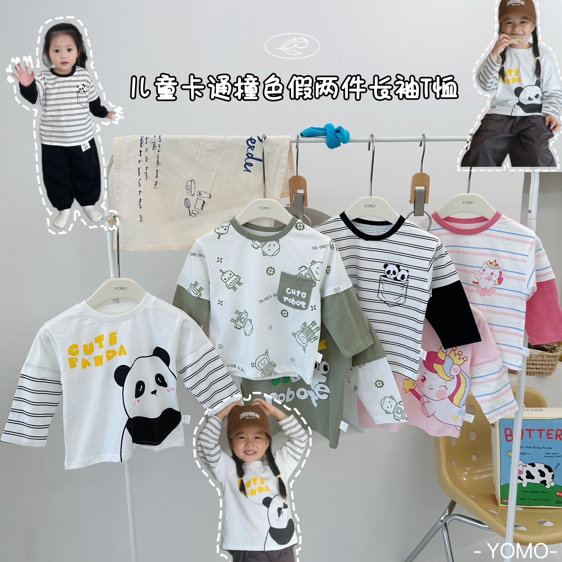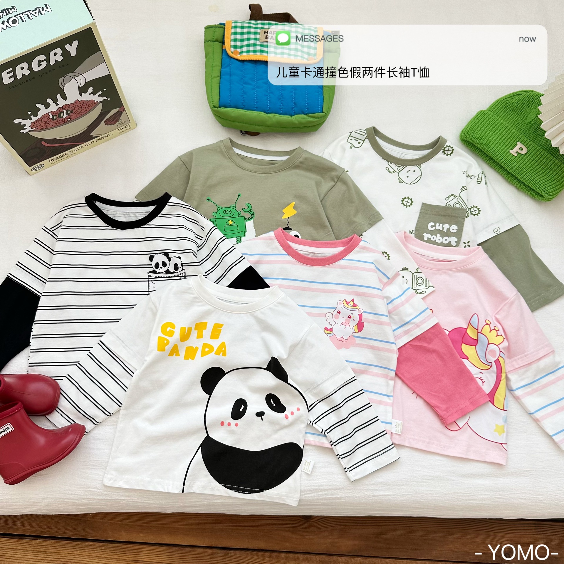 YM3178 어린이 가을 새로운 만화 색상 대비 가짜 두 긴 소매 티셔츠 [2]스토어 가기