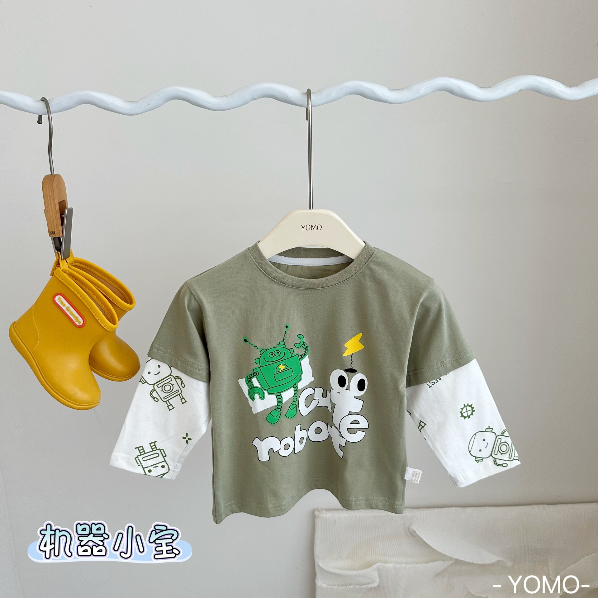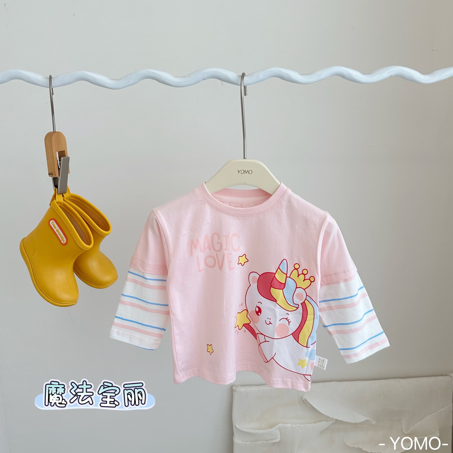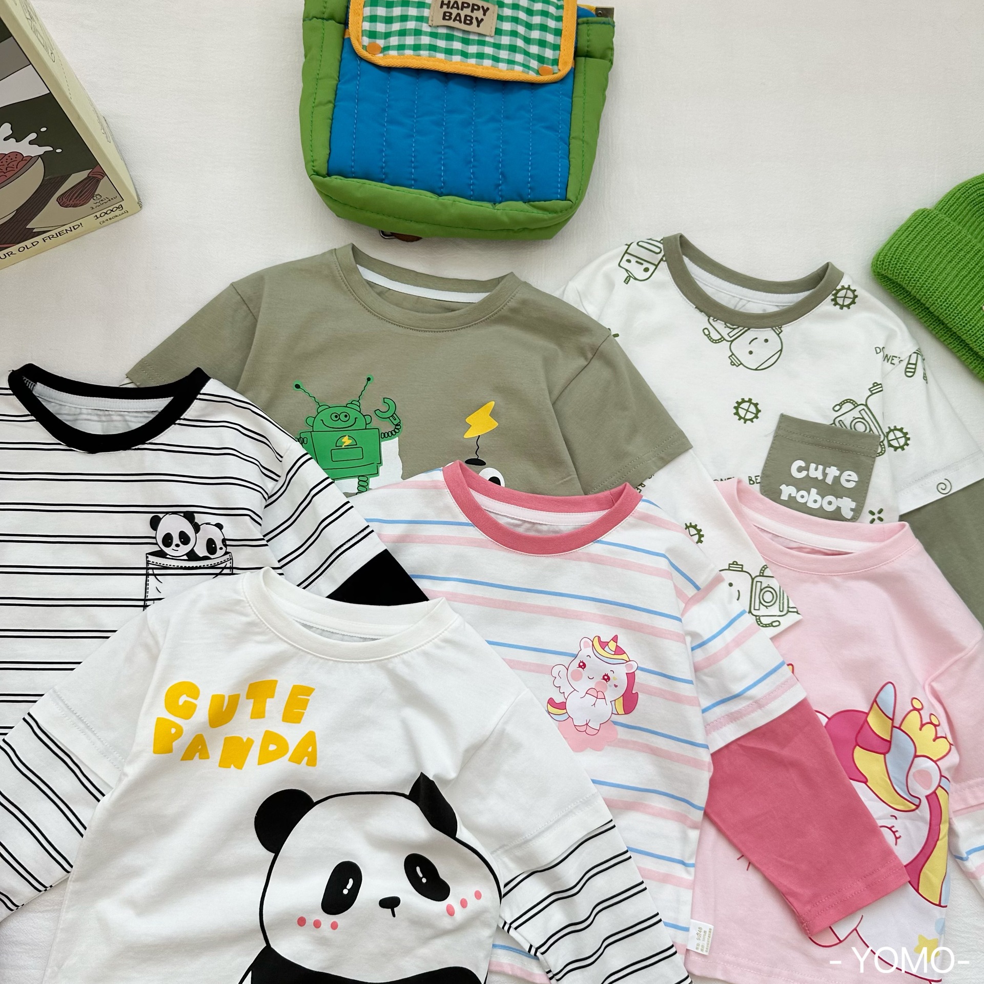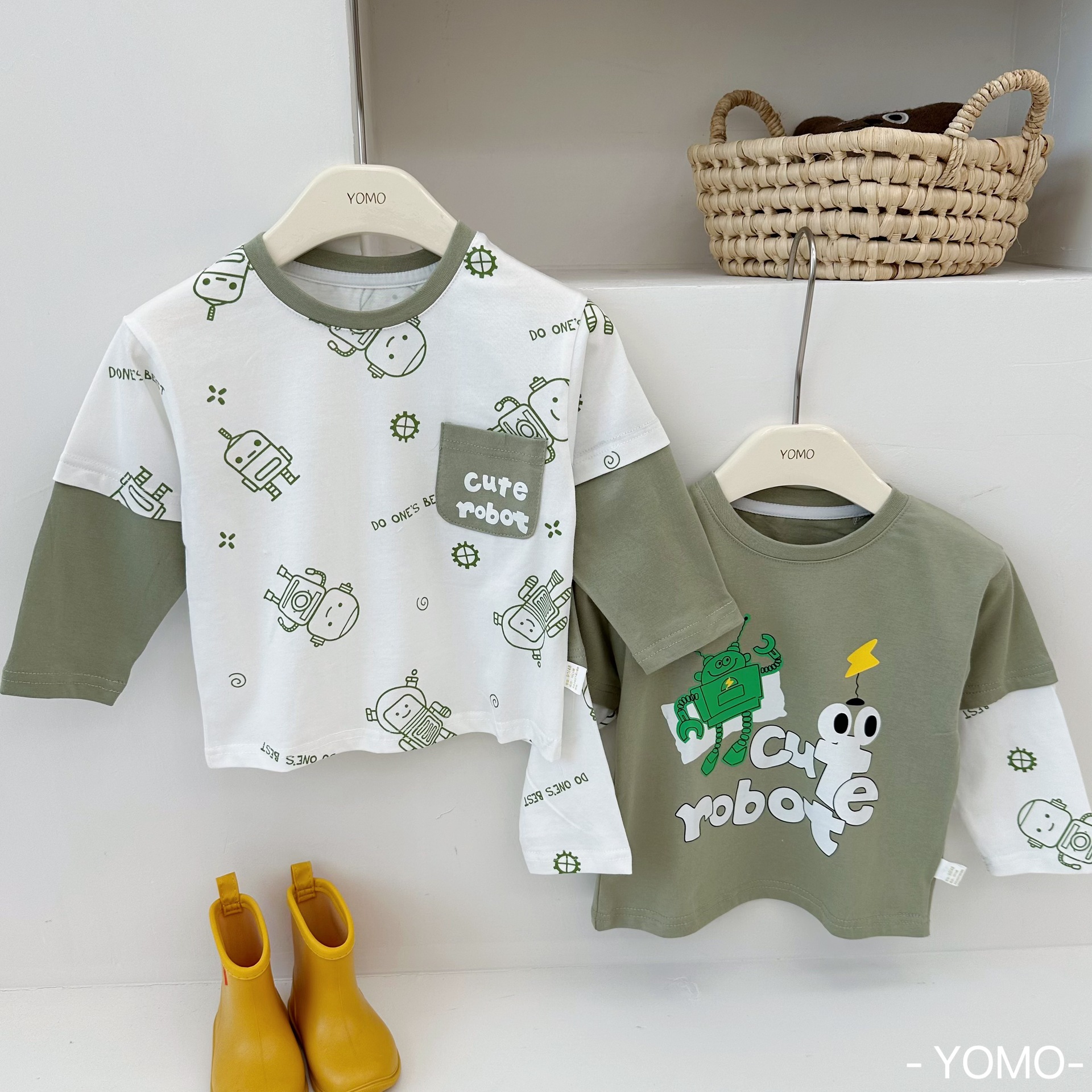 YM3178 어린이 가을 새로운 만화 색상 대비 가짜 두 긴 소매 티셔츠 [2]스토어 가기