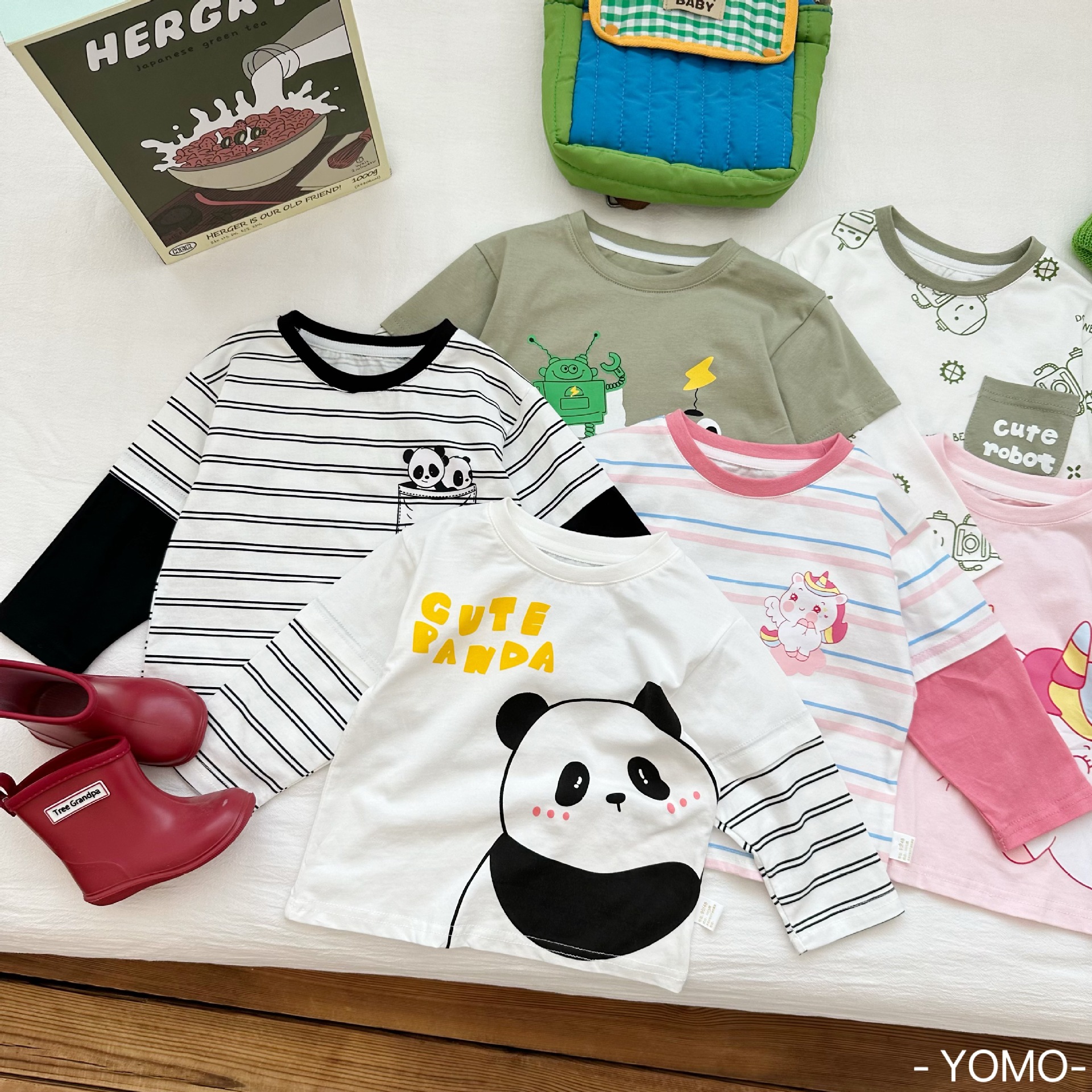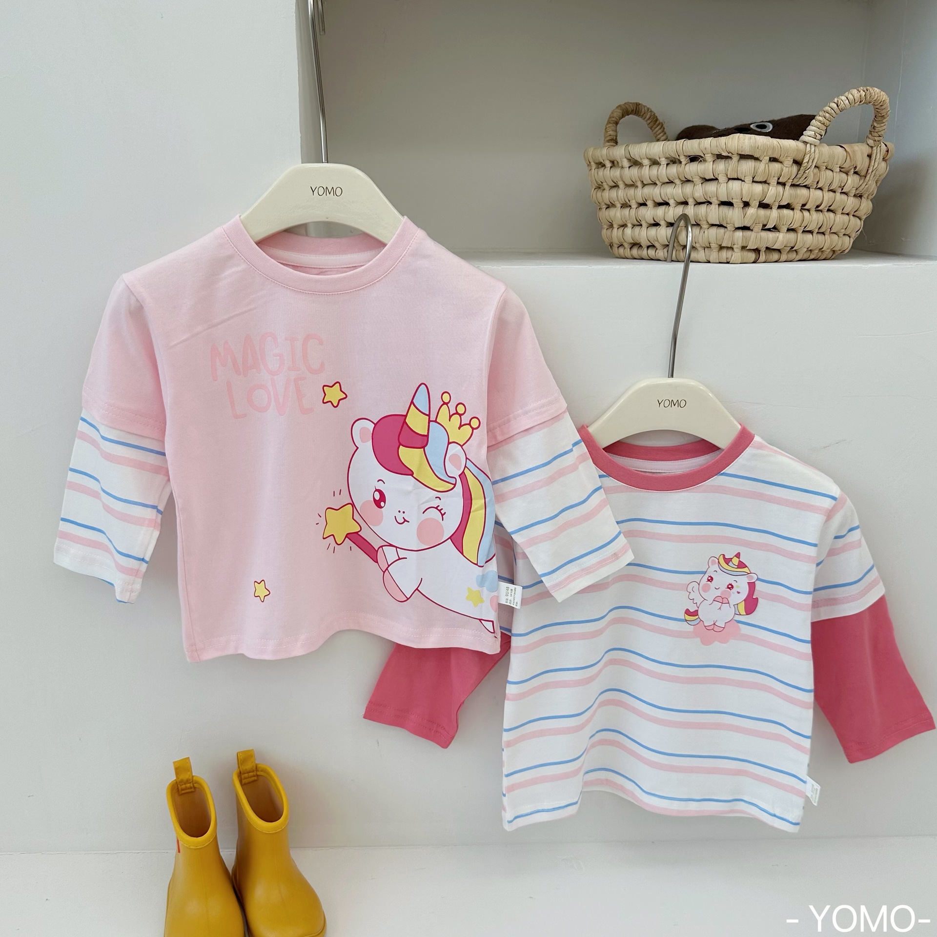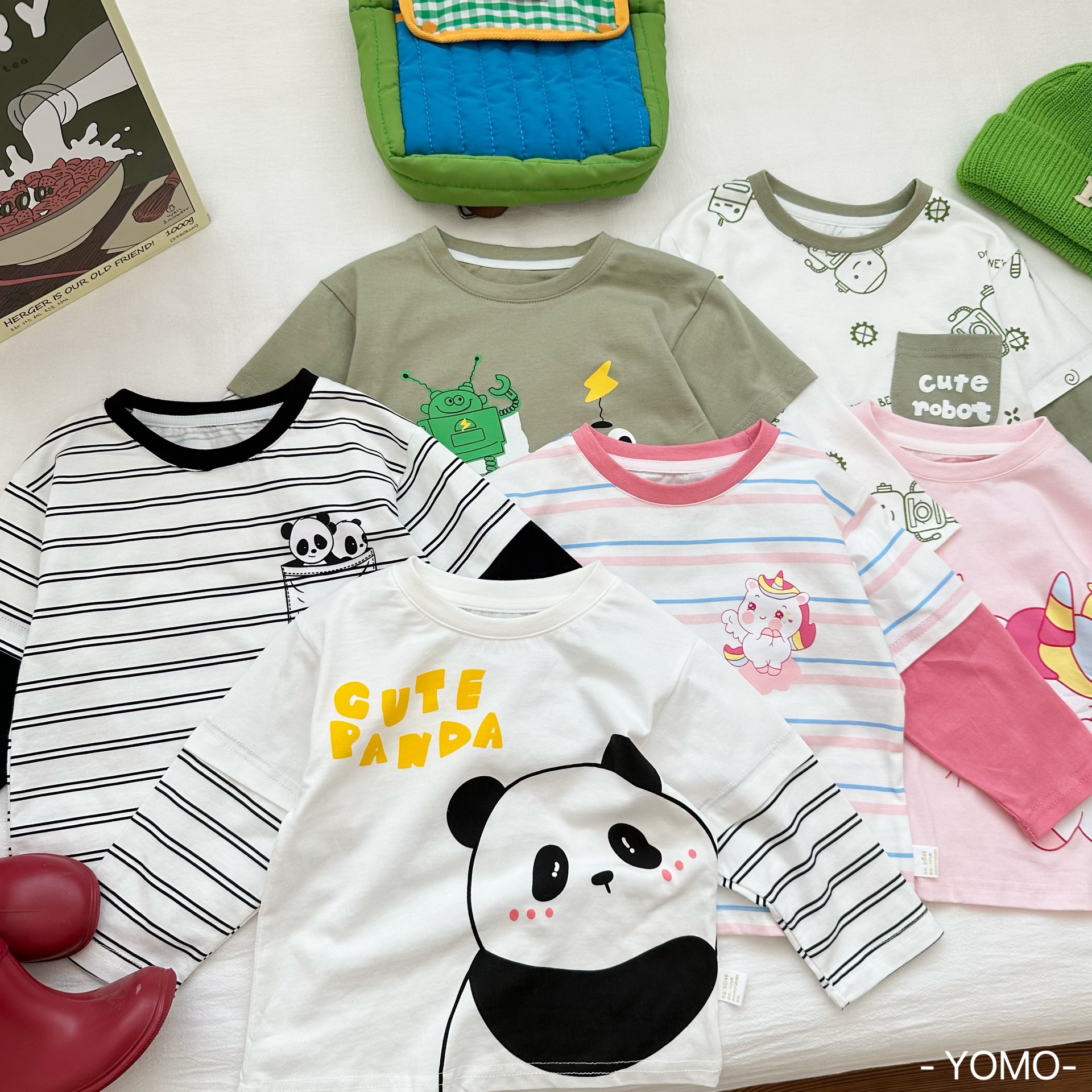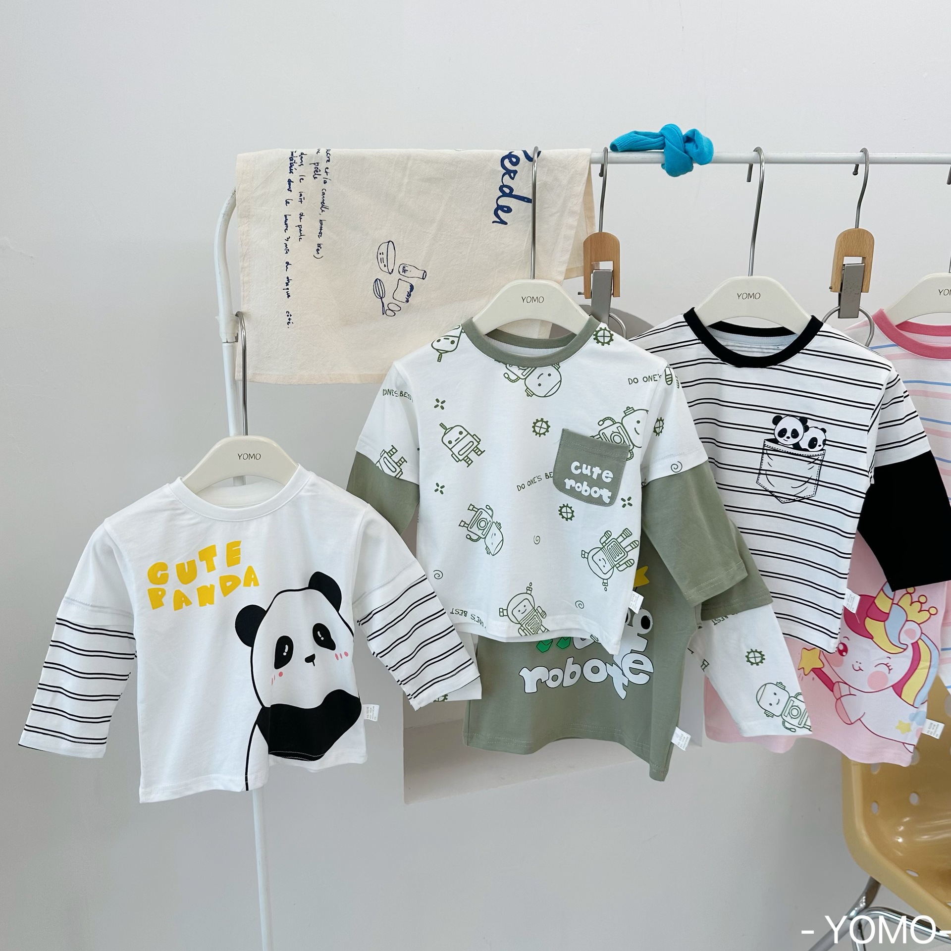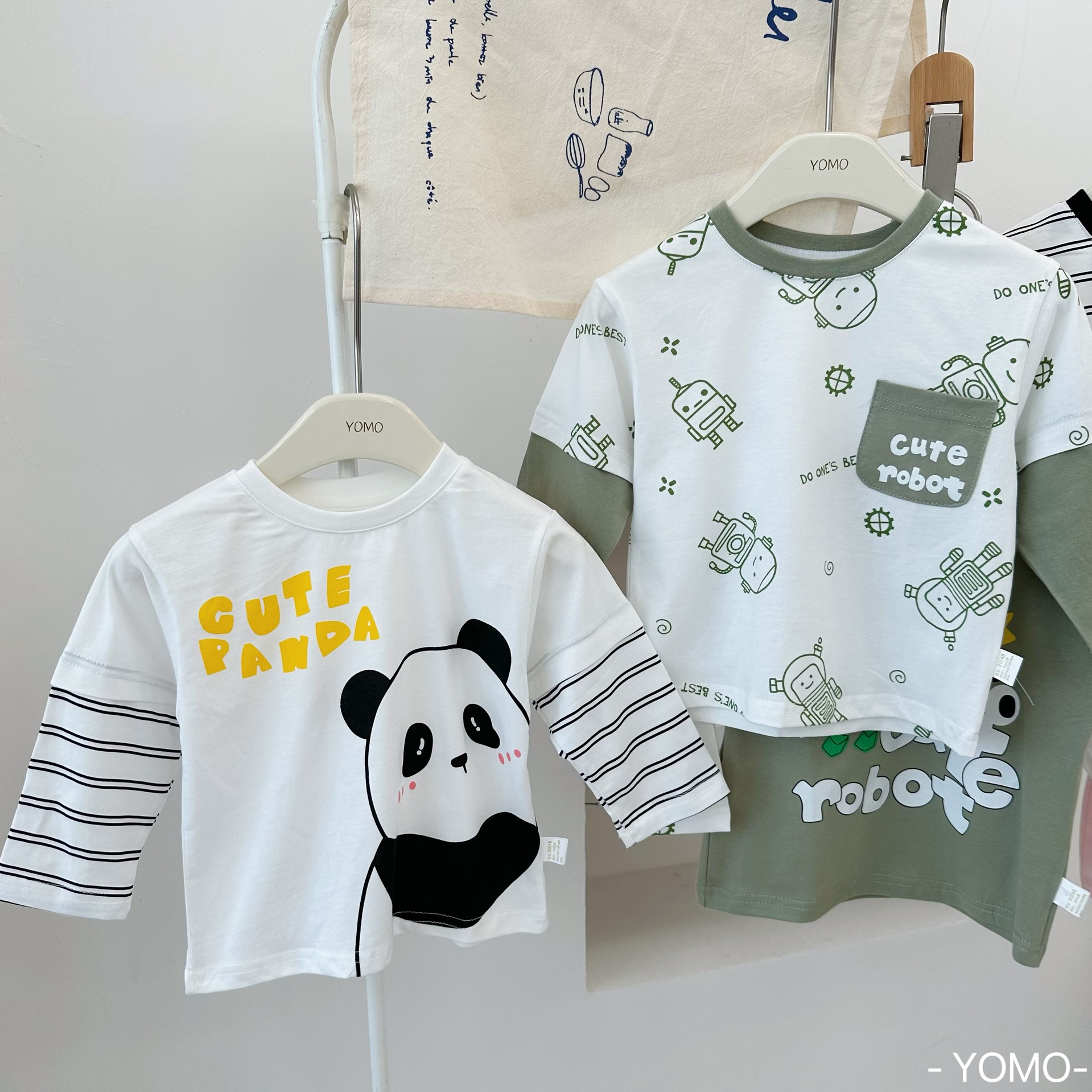 YM3178 어린이 가을 새로운 만화 색상 대비 가짜 두 긴 소매 티셔츠 [2]스토어 가기