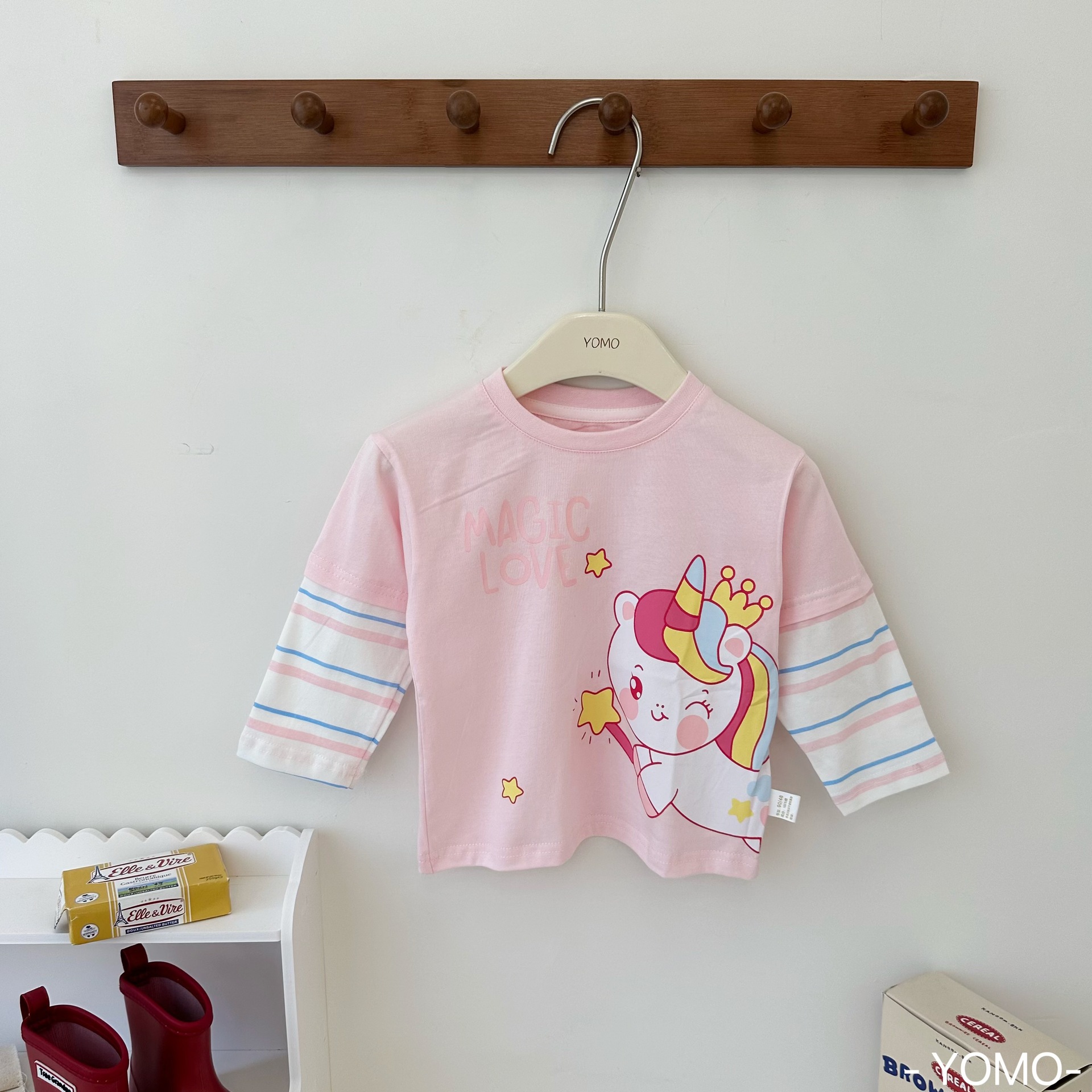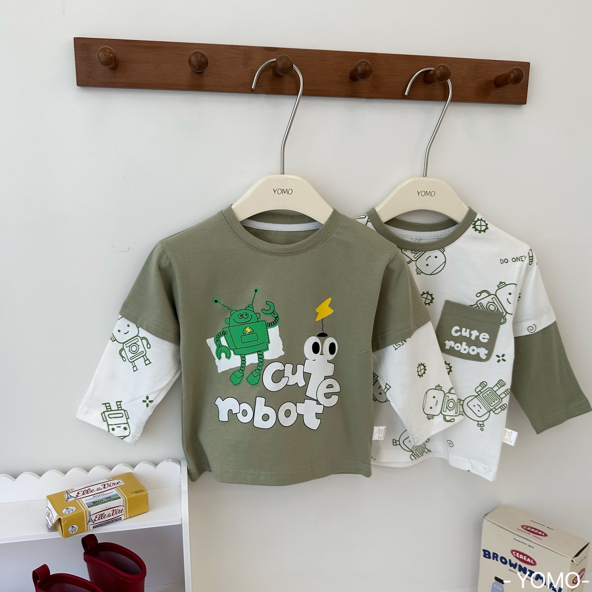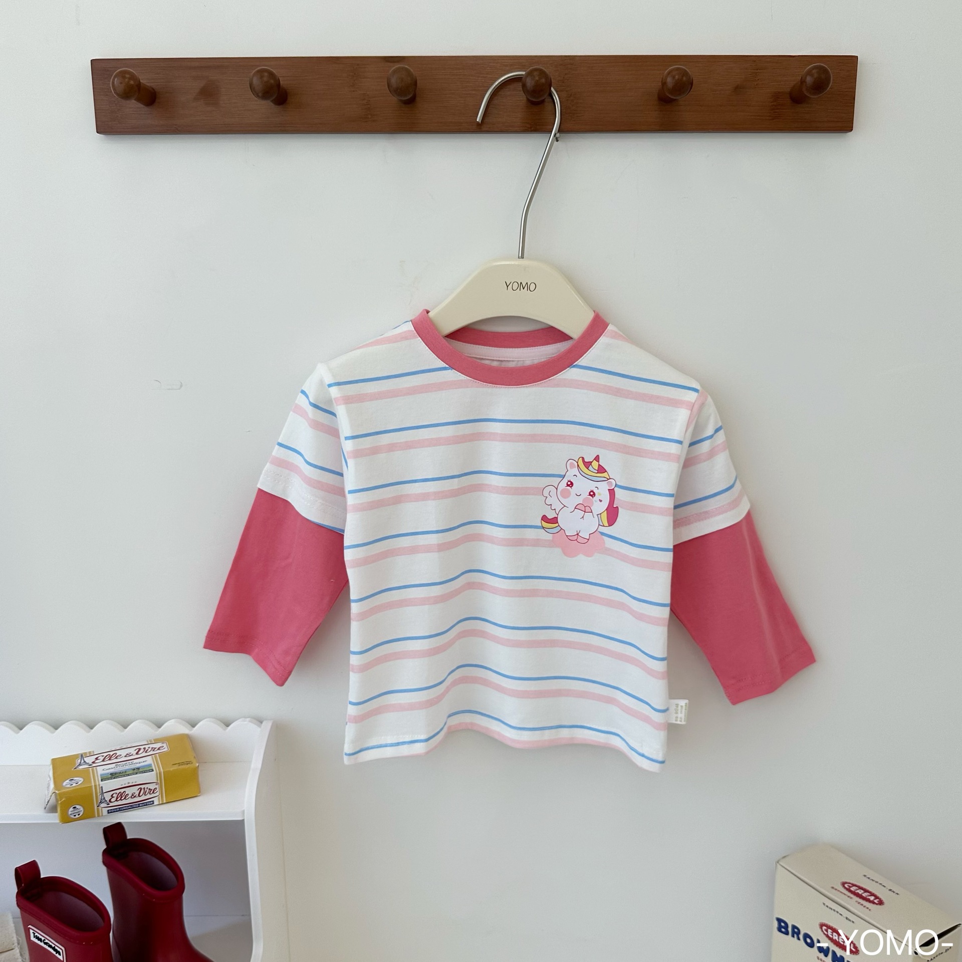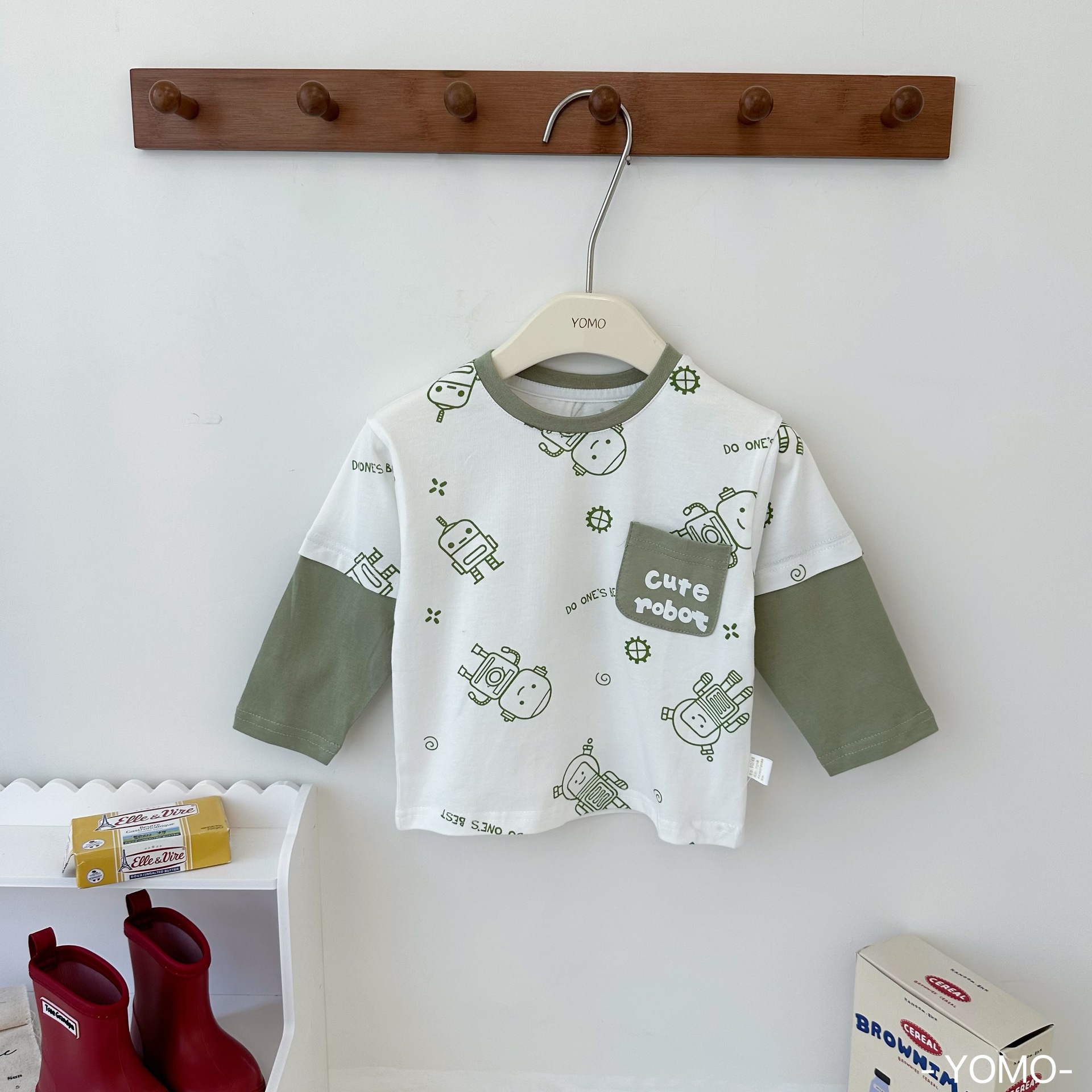 YM3178 어린이 가을 새로운 만화 색상 대비 가짜 두 긴 소매 티셔츠 [2]스토어 가기