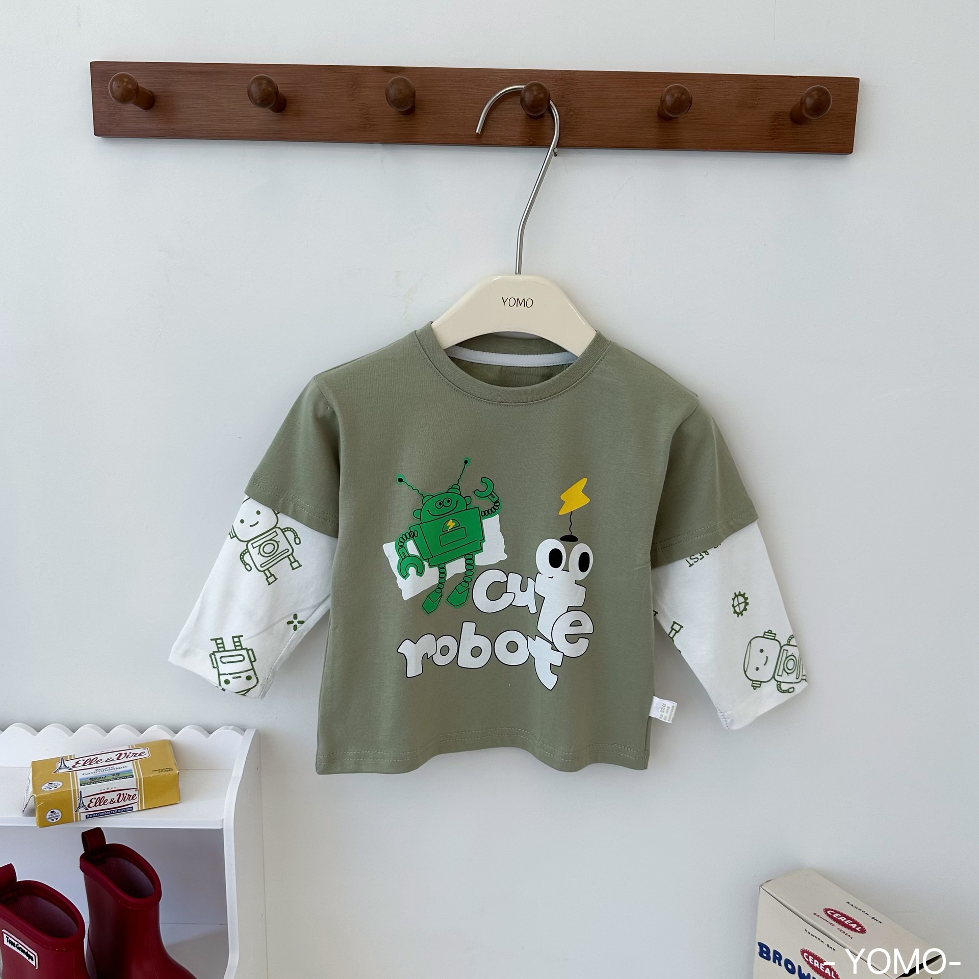 YM3178 어린이 가을 새로운 만화 색상 대비 가짜 두 긴 소매 티셔츠 [2]