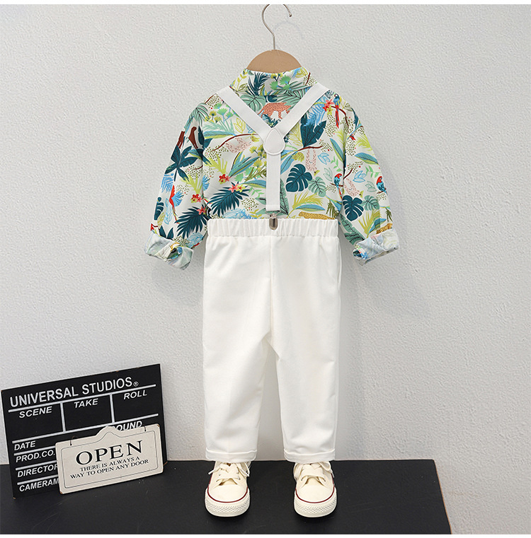 아기 멜빵 세트 서양식 2024 새로운 아기 아동복 소년 옷 캐주얼 가을 셔츠 투피스 세트스토어 가기
