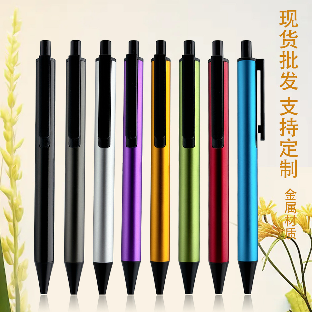 도매 및 맞춤형 로고 비즈니스 프레스 볼펜 사용자 정의 레터링은 로고 광고 산화 다양한 색상을 인쇄 할 수 있습니다.