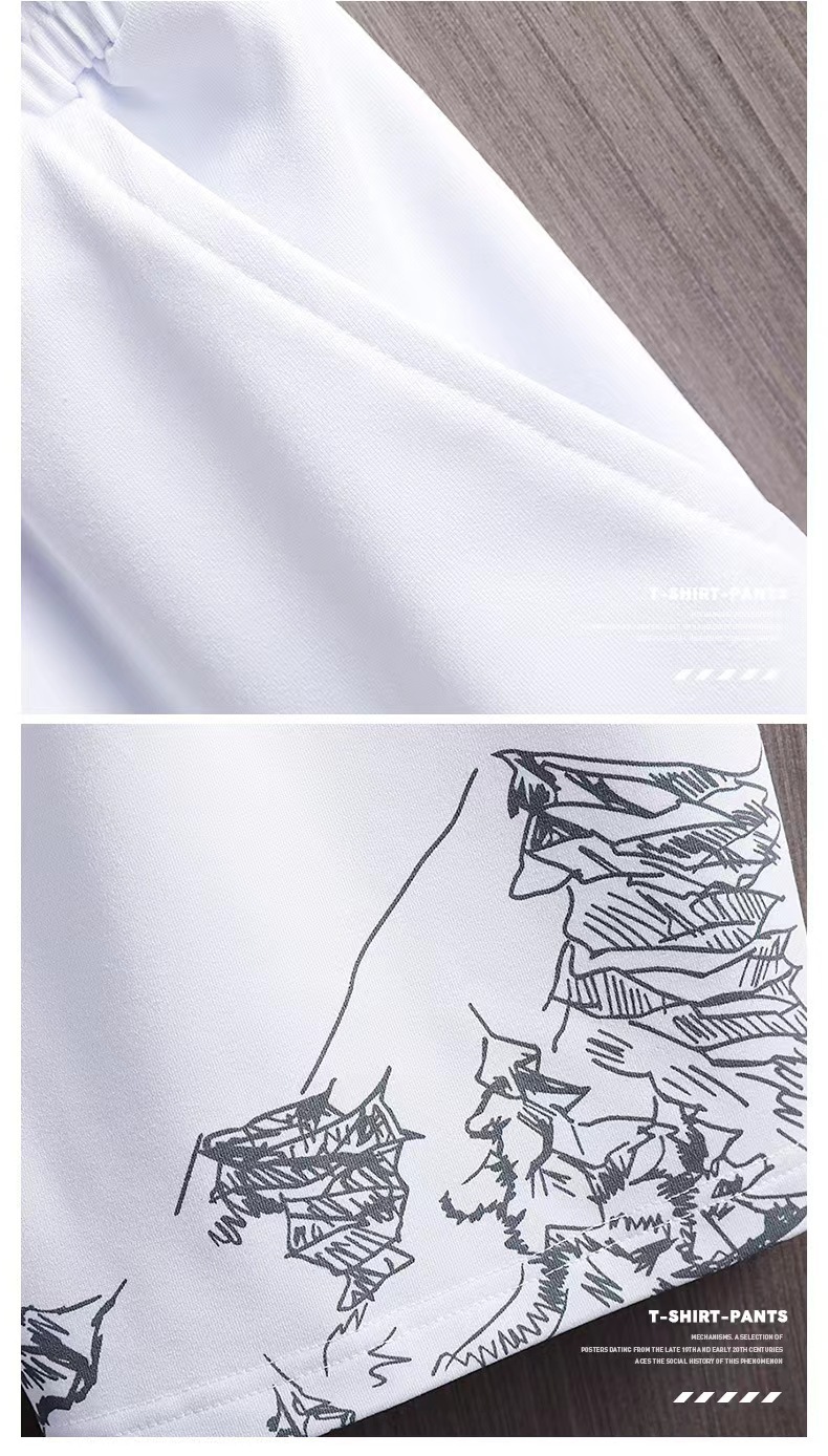 아이스 실크 반팔 티셔츠 세트 여름 새 디지털 인쇄 패션 한류 슬림핏 스포츠 세트 크로스 보급