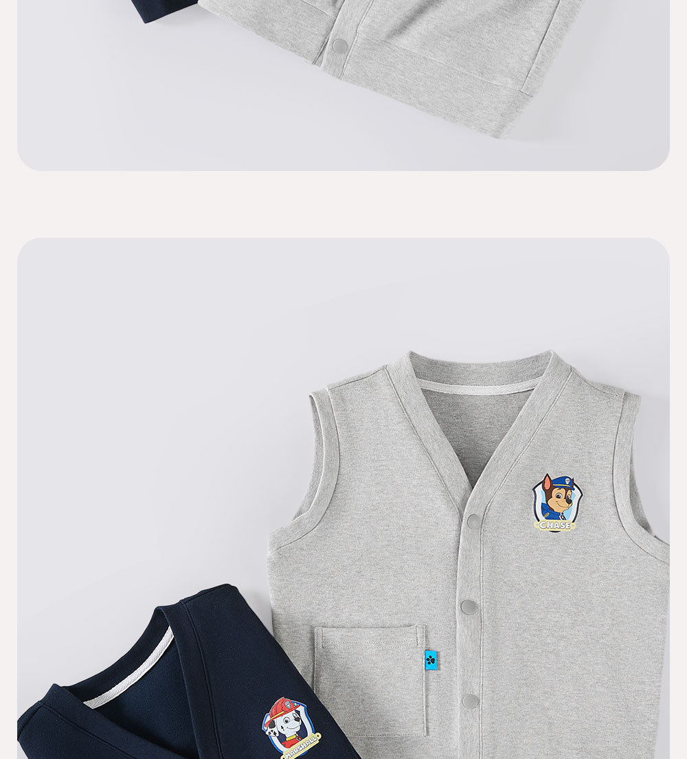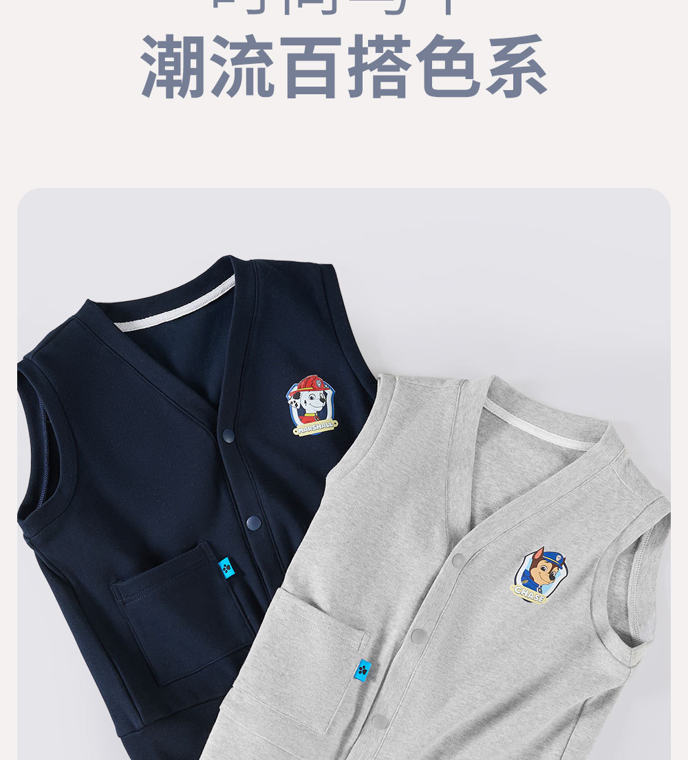 Paw Paw Team 어린이 조끼, 봄과 가을 조끼, 소년 조끼, 어린이 및 중년 어린이 니트 재킷, 순면 아우터 조끼