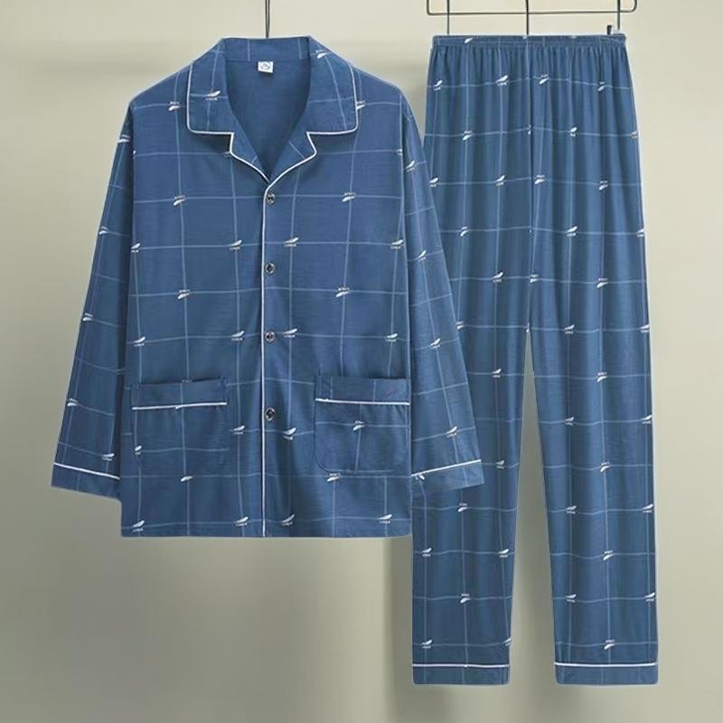 중년 및 노인을위한 면화 잠옷 남성 가을 긴팔 바지 플러스 사이즈 긴팔 아빠의 집 옷 봄과 가을 스타일스토어 가기