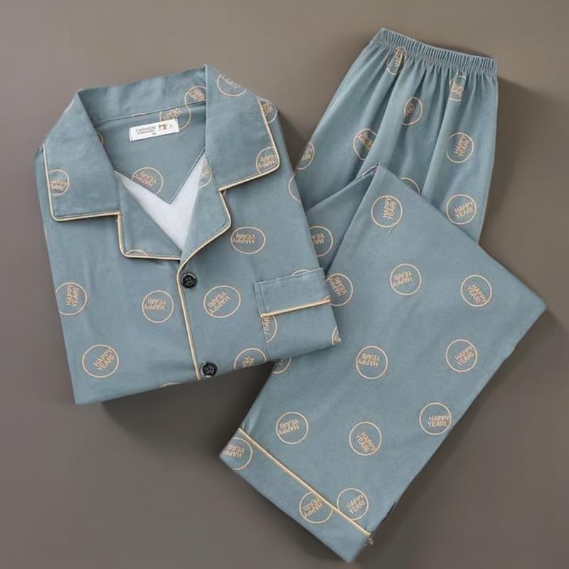 중년 및 노인을위한 면화 잠옷 남성 가을 긴팔 바지 플러스 사이즈 긴팔 아빠의 집 옷 봄과 가을 스타일