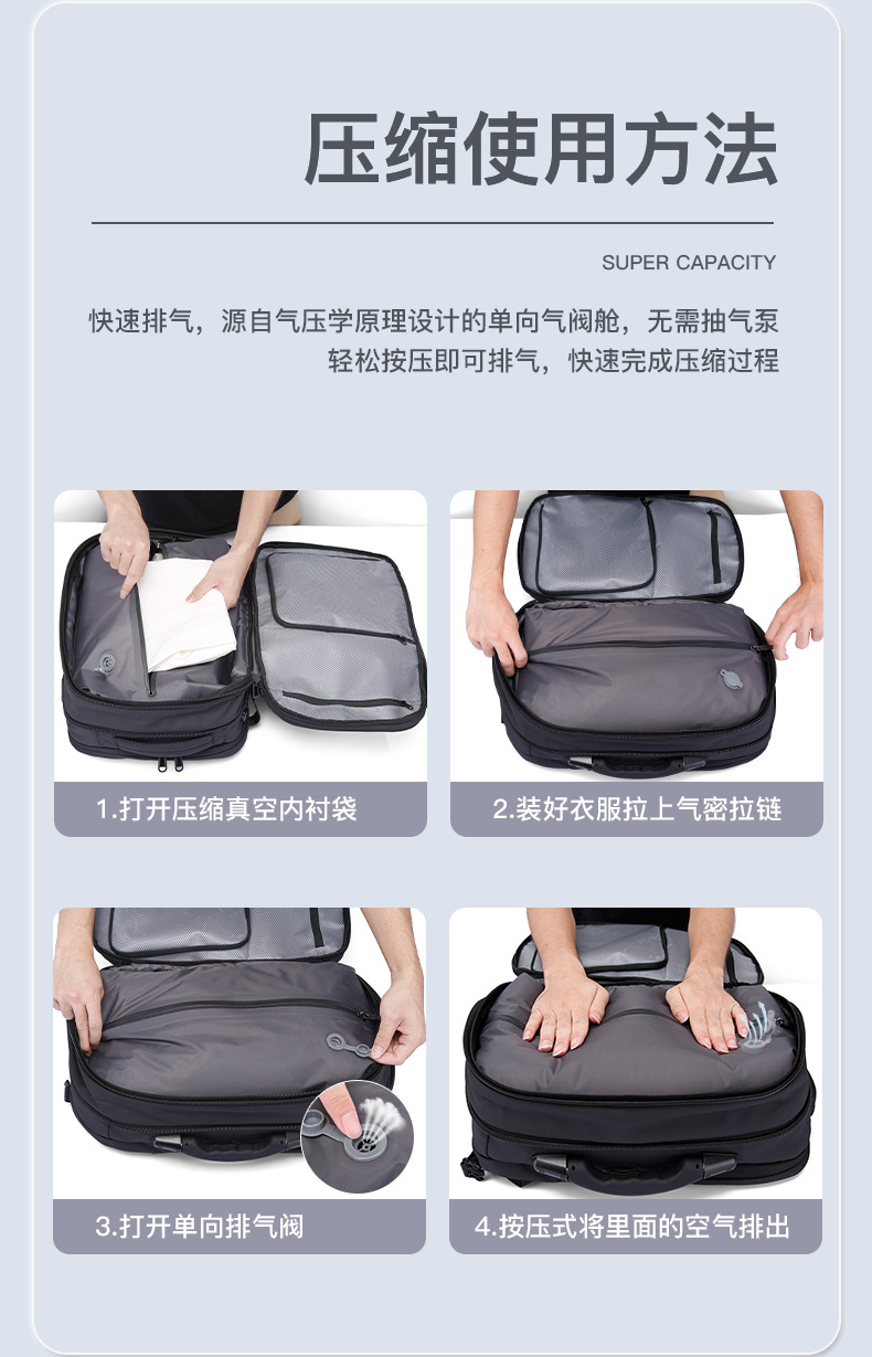 BANGE 진공 보관 배낭 남성 대용량 비즈니스 여행 중급 컴퓨터 가방 확장 가능한 배낭스토어 가기