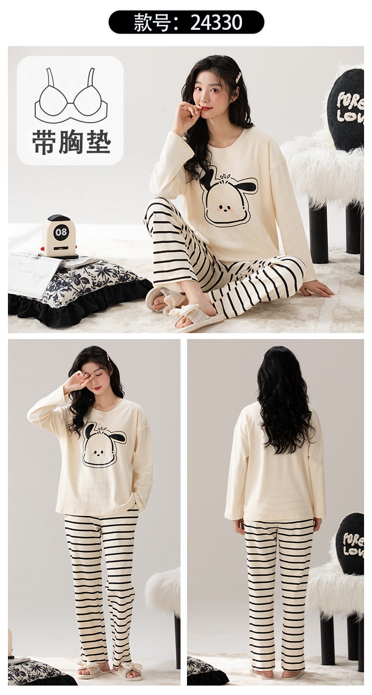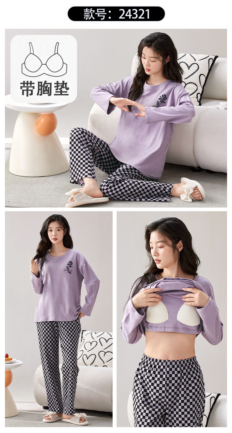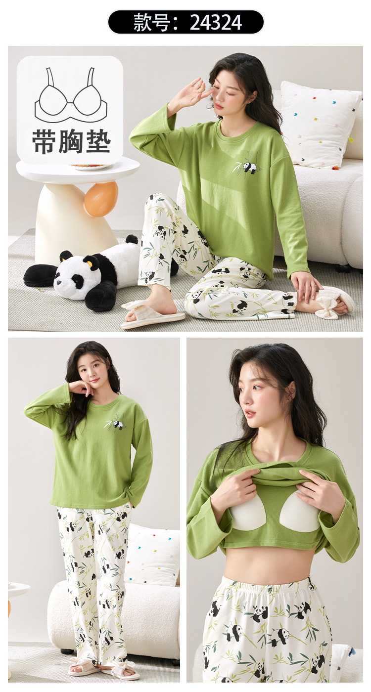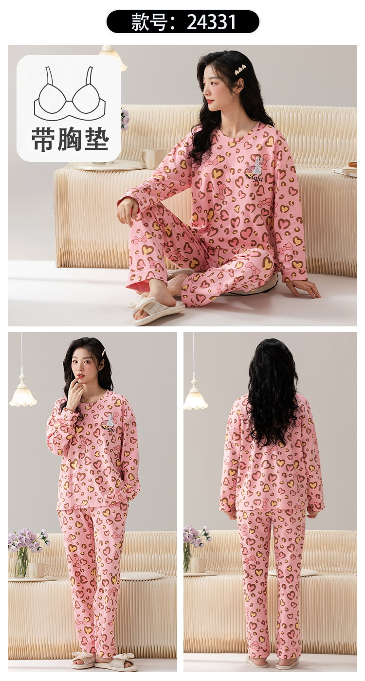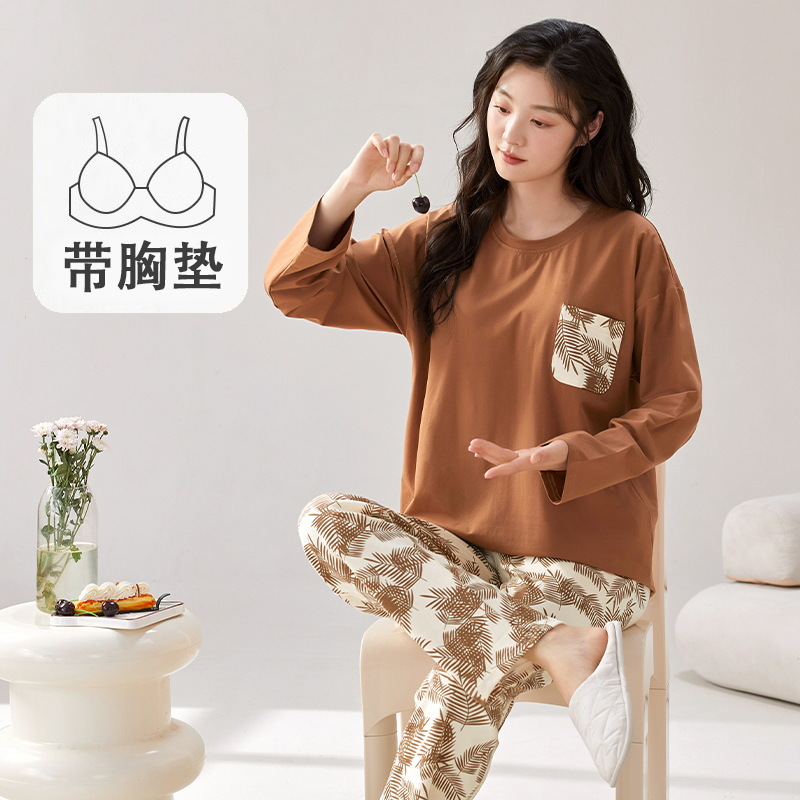 크루 넥 풀오버 파자마 여성의 봄과 가을, 가슴 패드웨어-무료 속옷 긴팔 홈 옷 안티 범프 복장