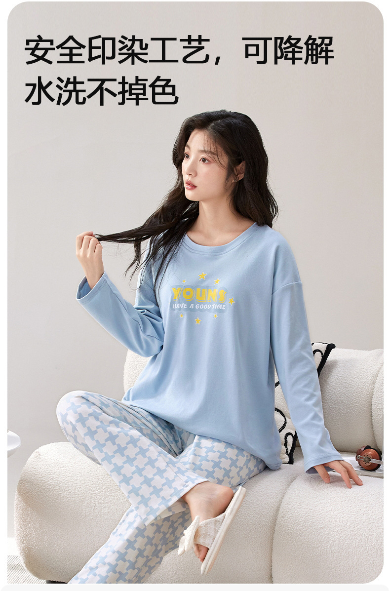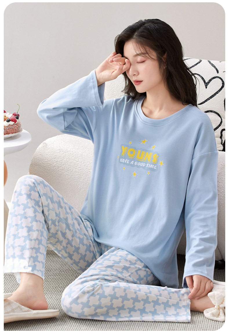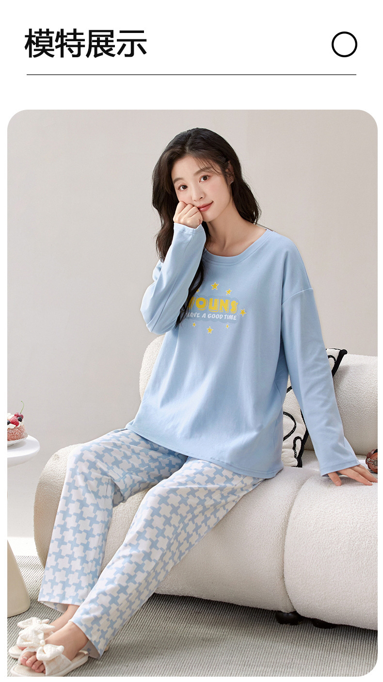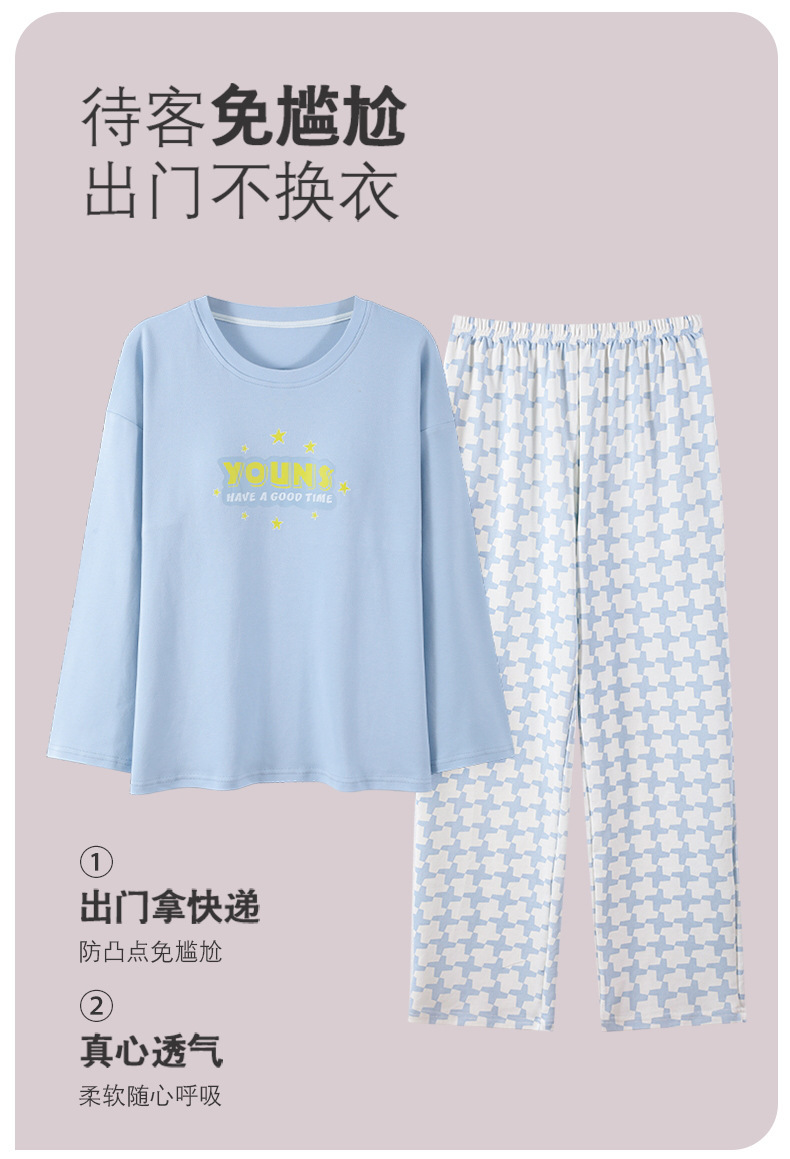 크루 넥 풀오버 파자마 여성의 봄과 가을, 가슴 패드웨어-무료 속옷 긴팔 홈 옷 안티 범프 복장