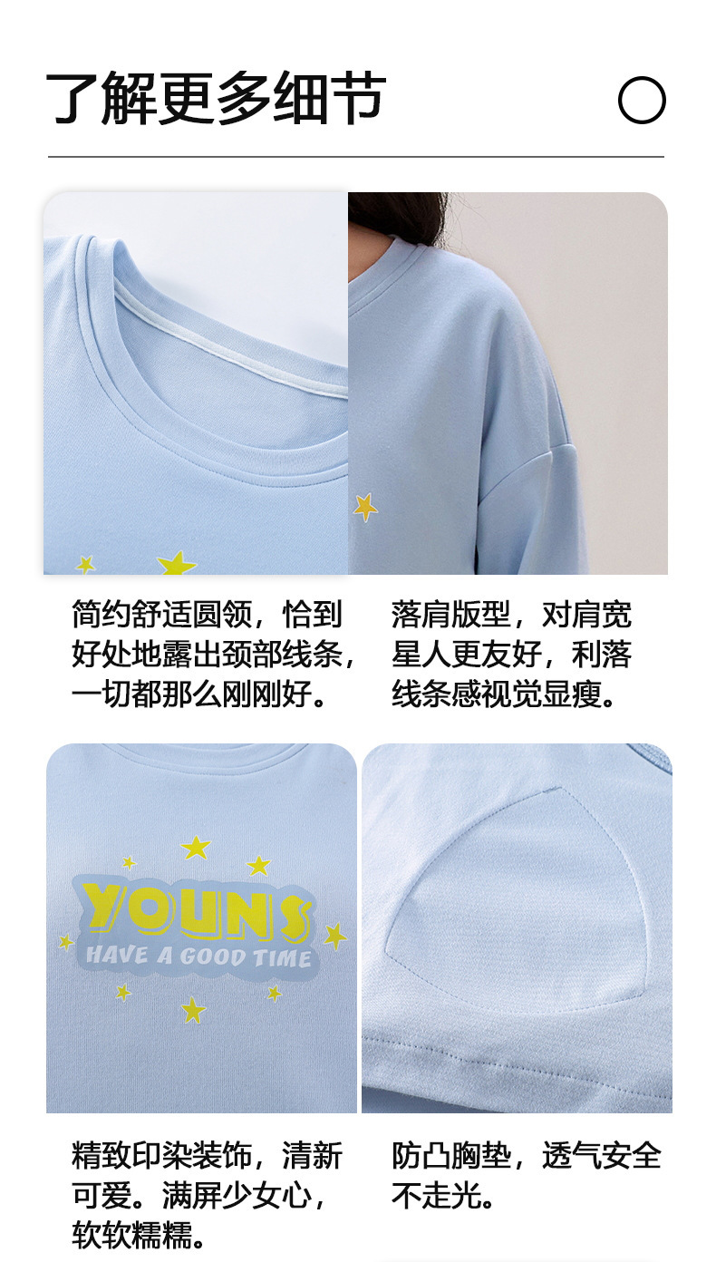 크루 넥 풀오버 파자마 여성의 봄과 가을, 가슴 패드웨어-무료 속옷 긴팔 홈 옷 안티 범프 복장스토어 가기