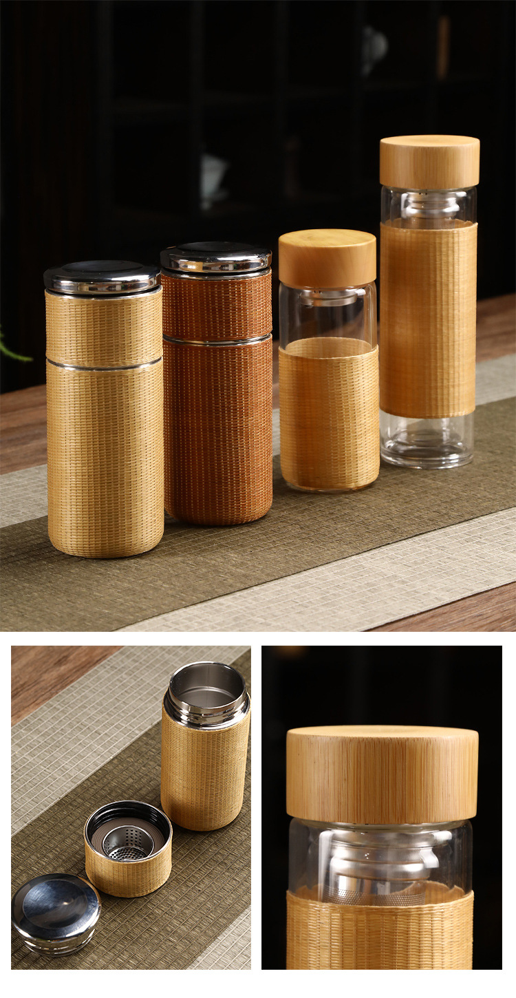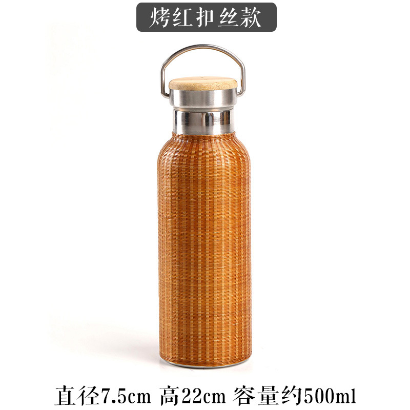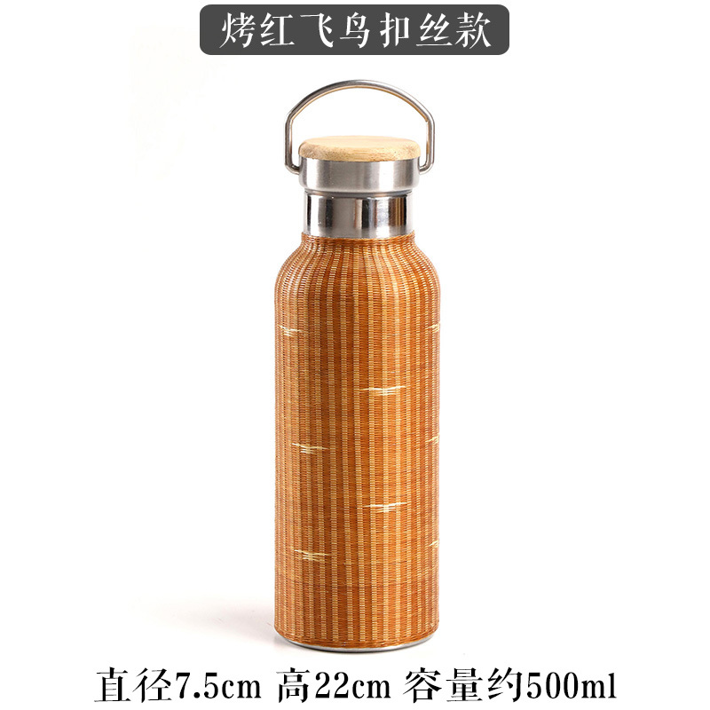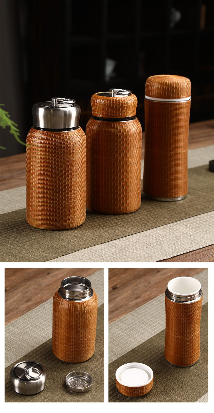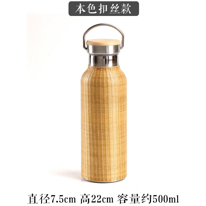 중국 대나무 보온병 컵 대용량 스테인레스 스틸 온수 병 여행 휴대용 컵 야외 보온병
