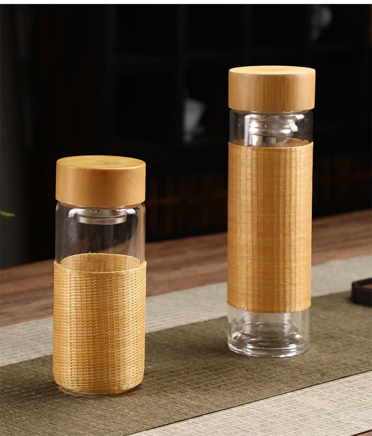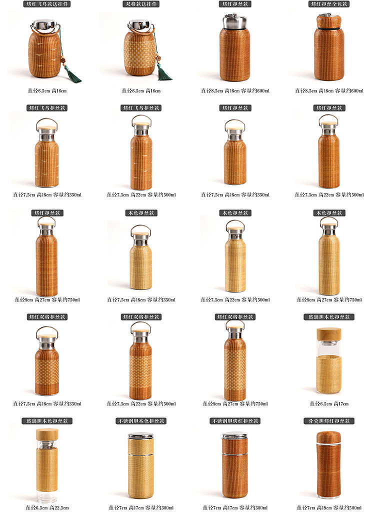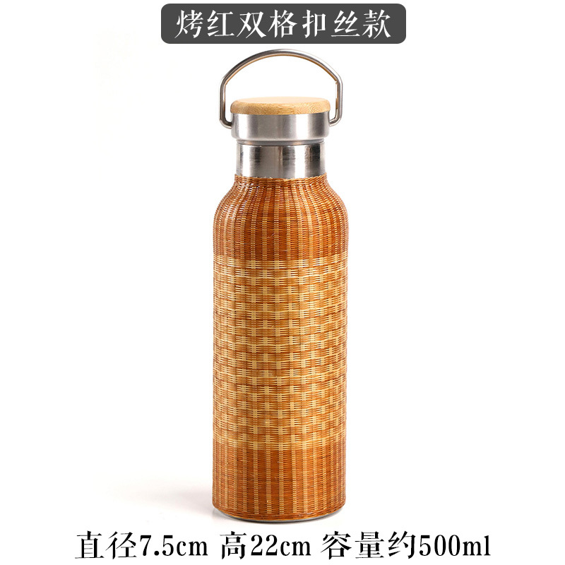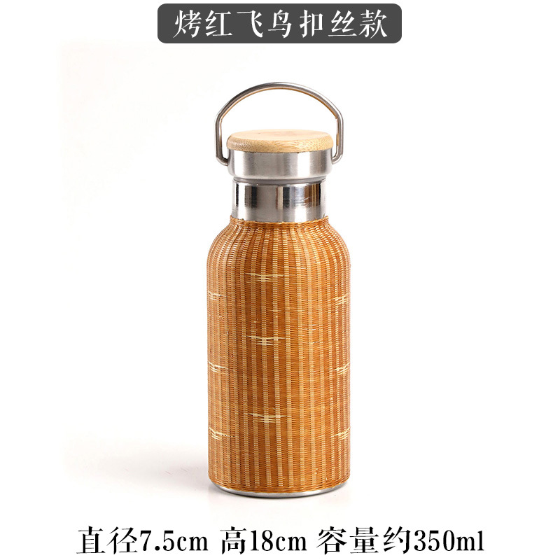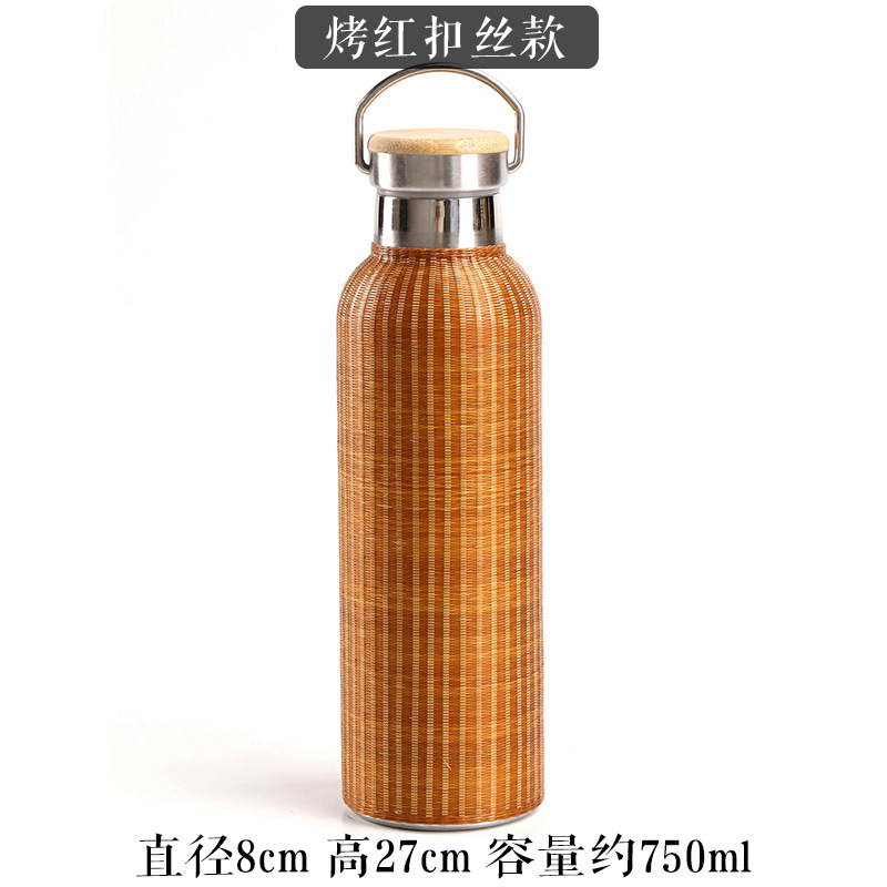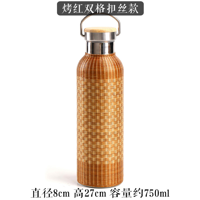 중국 대나무 보온병 컵 대용량 스테인레스 스틸 온수 병 여행 휴대용 컵 야외 보온병