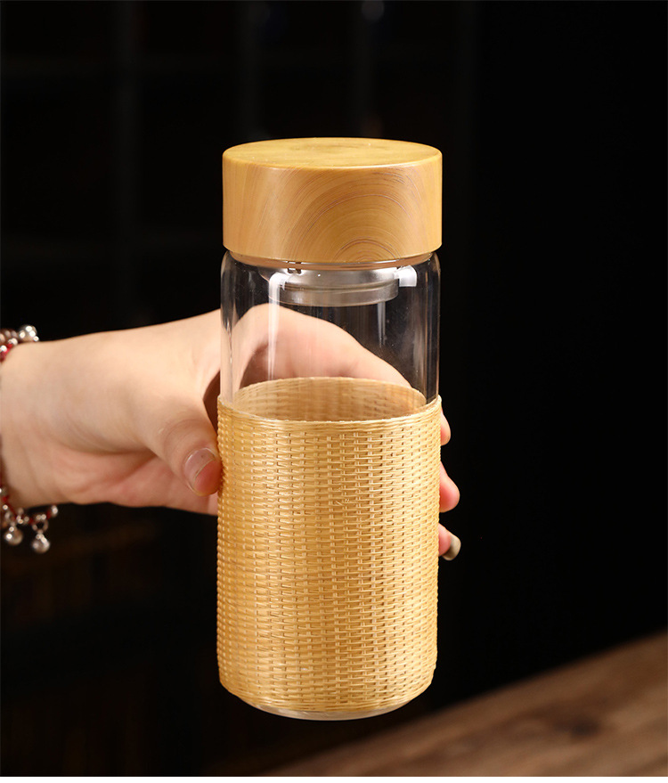 • 450ml 유리 방광 내추럴 컬러 버클 실크(대나무 커버)