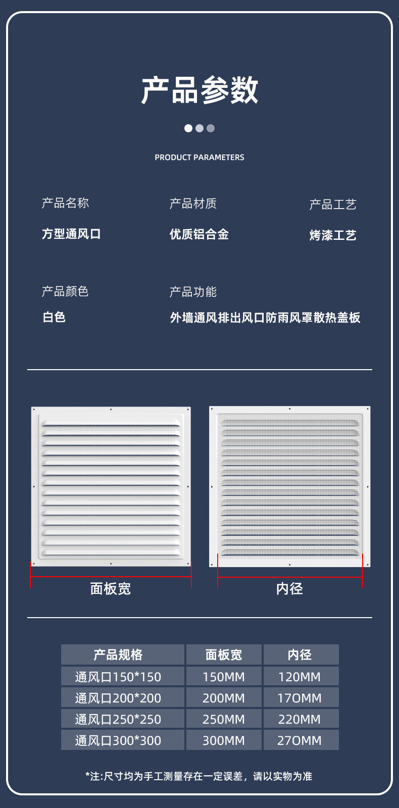 • 알루미늄 합금 + 흰색 페인트/환풍구 150*150