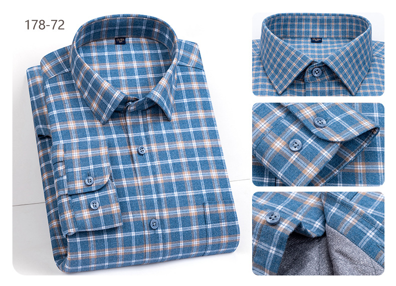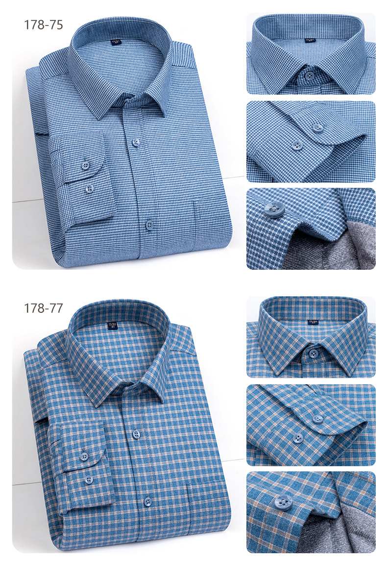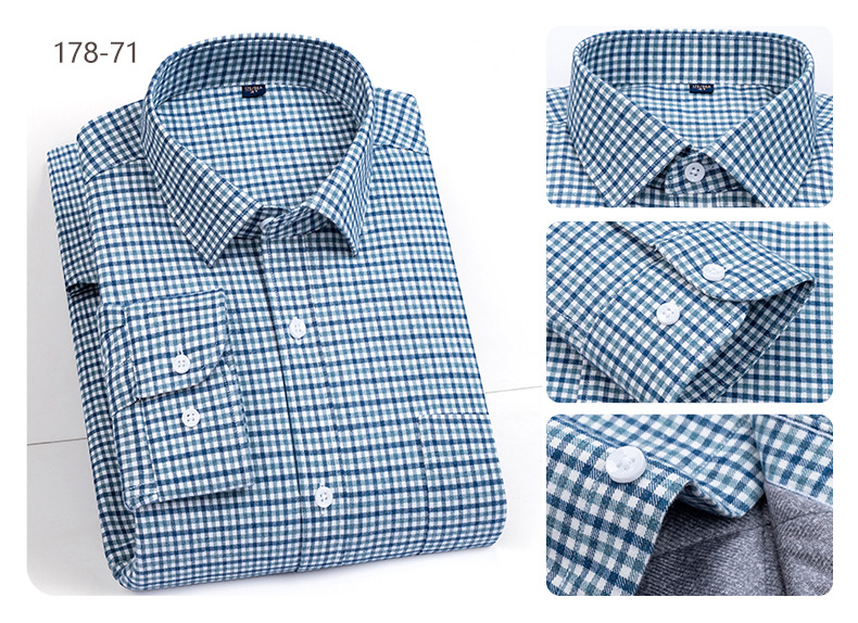 가을 겨울 순면 울 중년 남성 긴팔 체크 셔츠 따뜻한 체크 셔츠 비즈니스 플러스 벨벳 두꺼운 상의스토어 가기