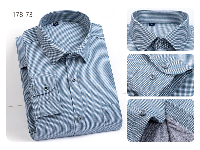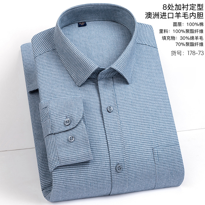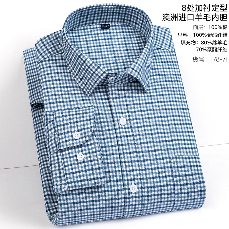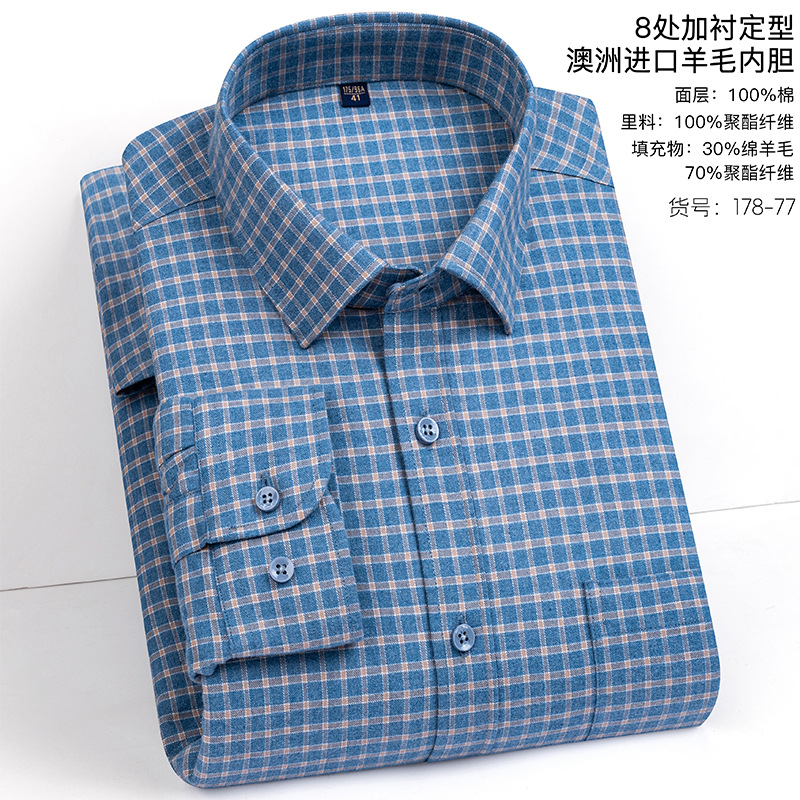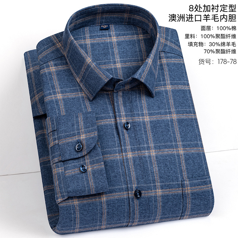 가을 겨울 순면 울 중년 남성 긴팔 체크 셔츠 따뜻한 체크 셔츠 비즈니스 플러스 벨벳 두꺼운 상의