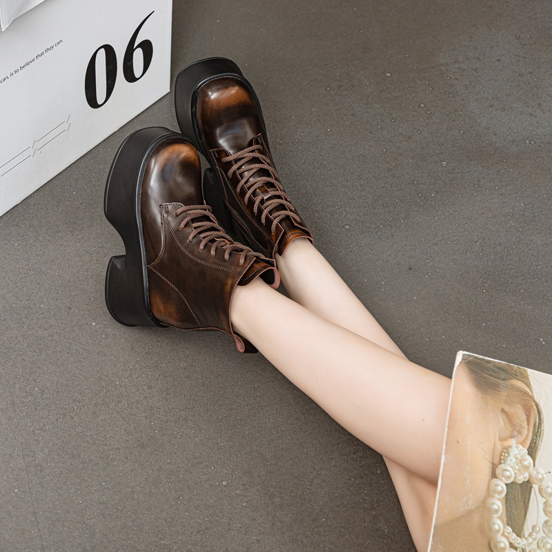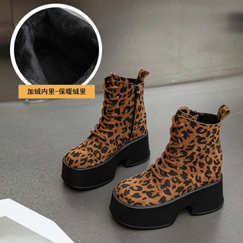 마틴 부츠 2025 가을 겨울 신상 여성용 숏부츠 레오파드 프린트 개성있는 두꺼운 밑창 컬러 브러쉬 부츠 레이스업 스타일 여성 부츠스토어 가기