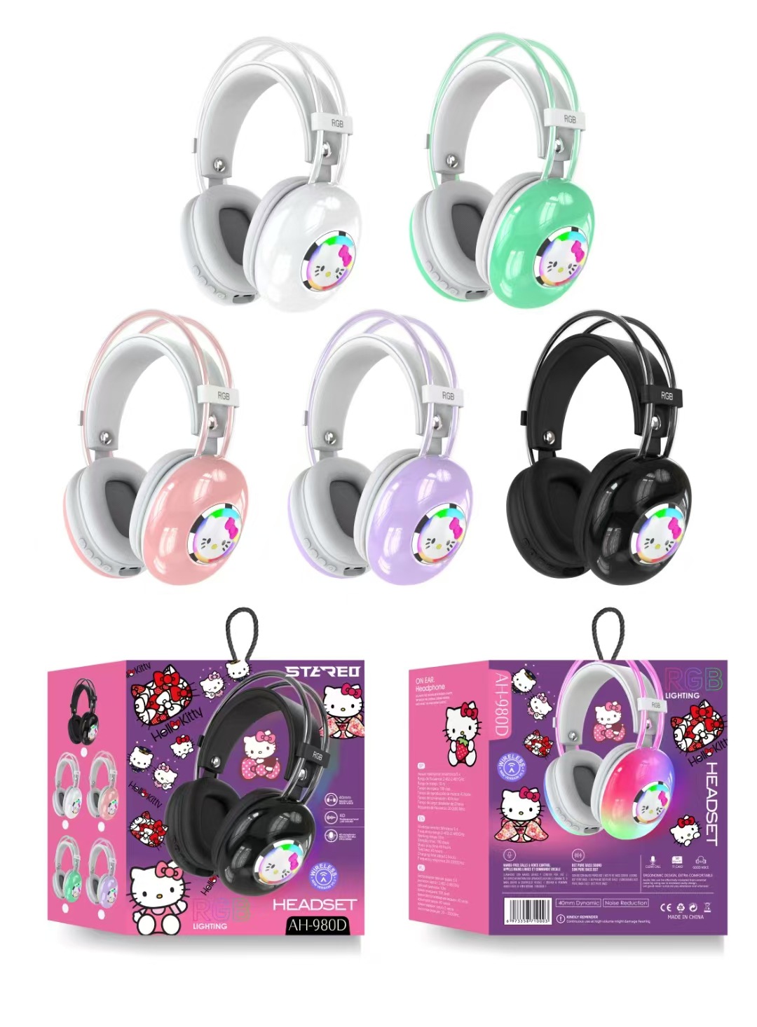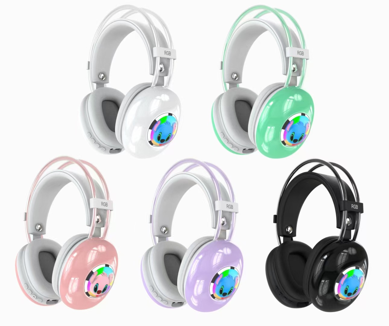 국경 간 새로운 stiltzai AH-980 창조적 인 만화 RGB 조명 어린이 학생 헤드셋 무선 블루투스 헤드셋