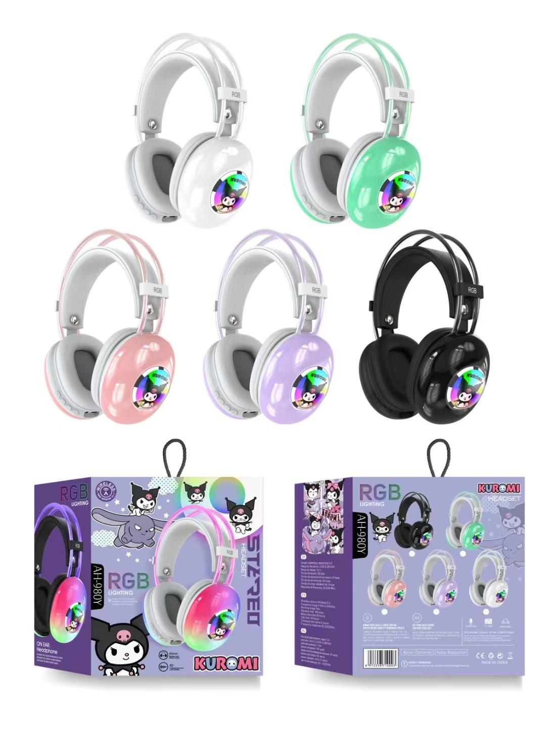 국경 간 새로운 stiltzai AH-980 창조적 인 만화 RGB 조명 어린이 학생 헤드셋 무선 블루투스 헤드셋스토어 가기