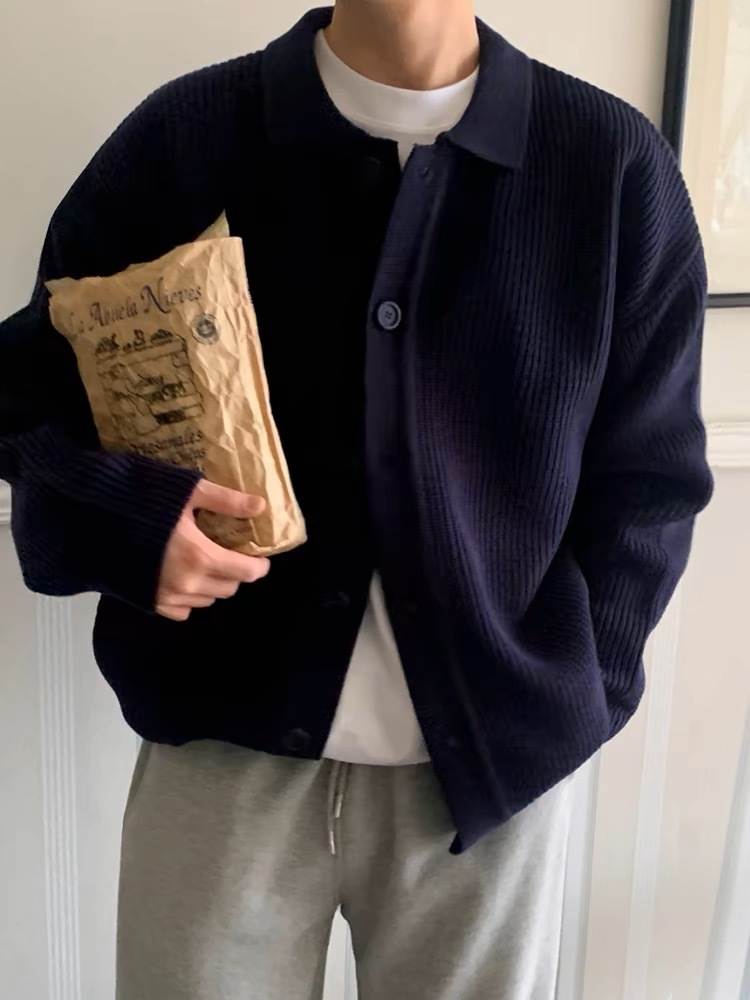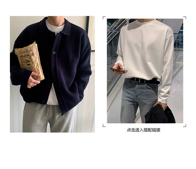단색 옷깃 니트 스웨터 카디건 재킷 남자 가을 스웨터 한국 유행 캐주얼 게으른 스타일 탑 옷깃스토어 가기