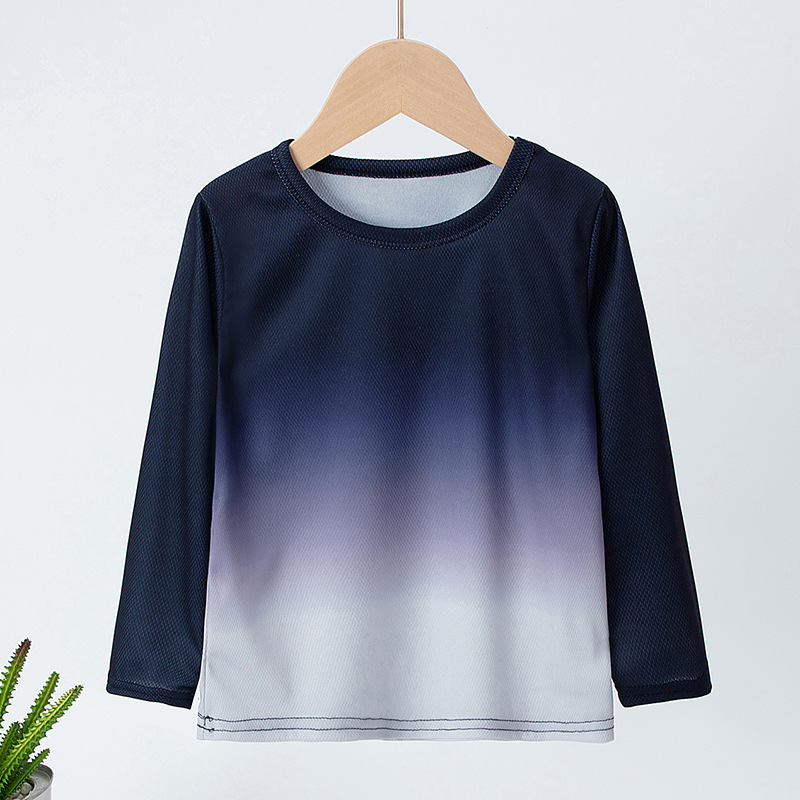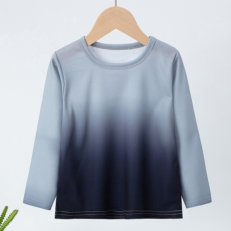 국경 간 어린이 새로운 간단한 티셔츠 스포츠 빠른 건조 소년 봄과 가을 둥근 목 올 매치 느슨한 긴 소매 최고 트렌드