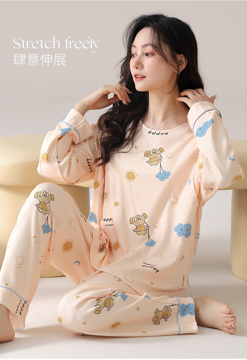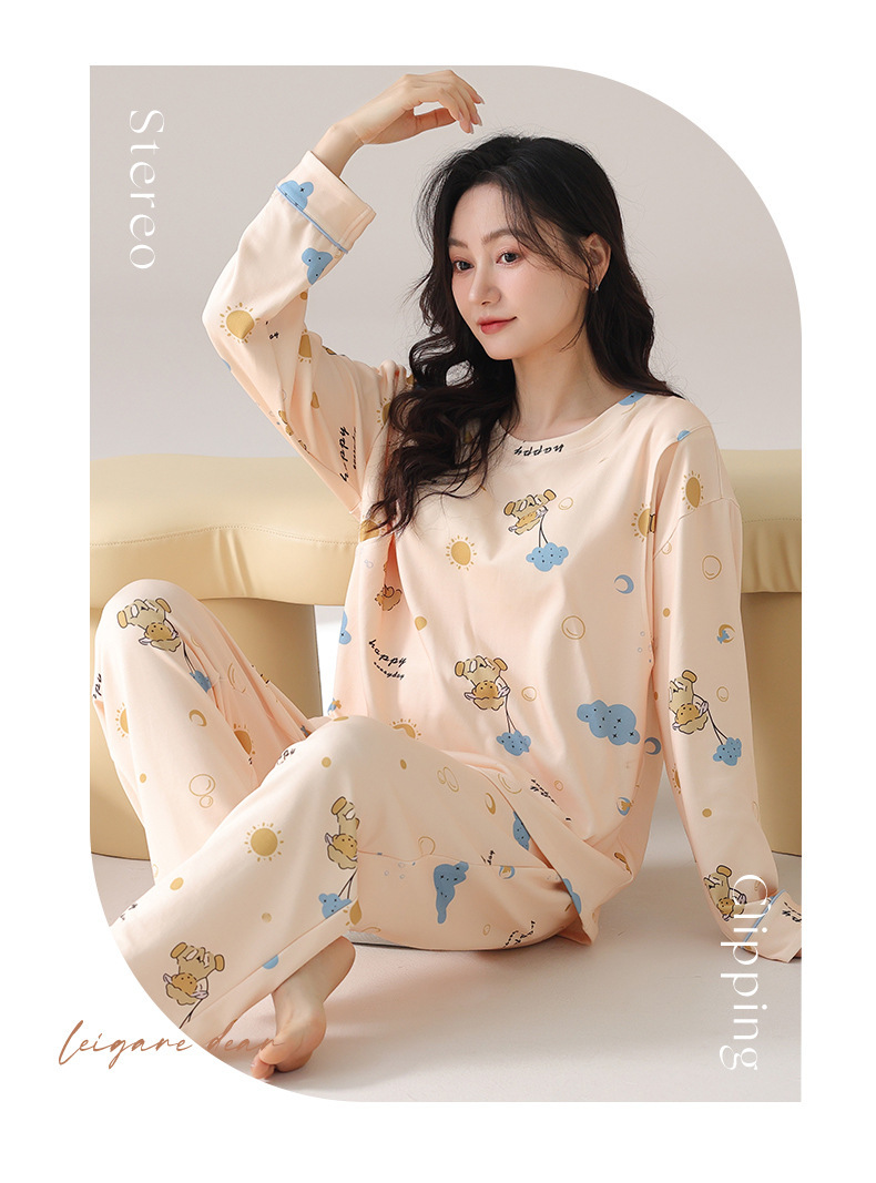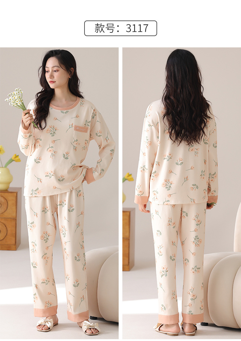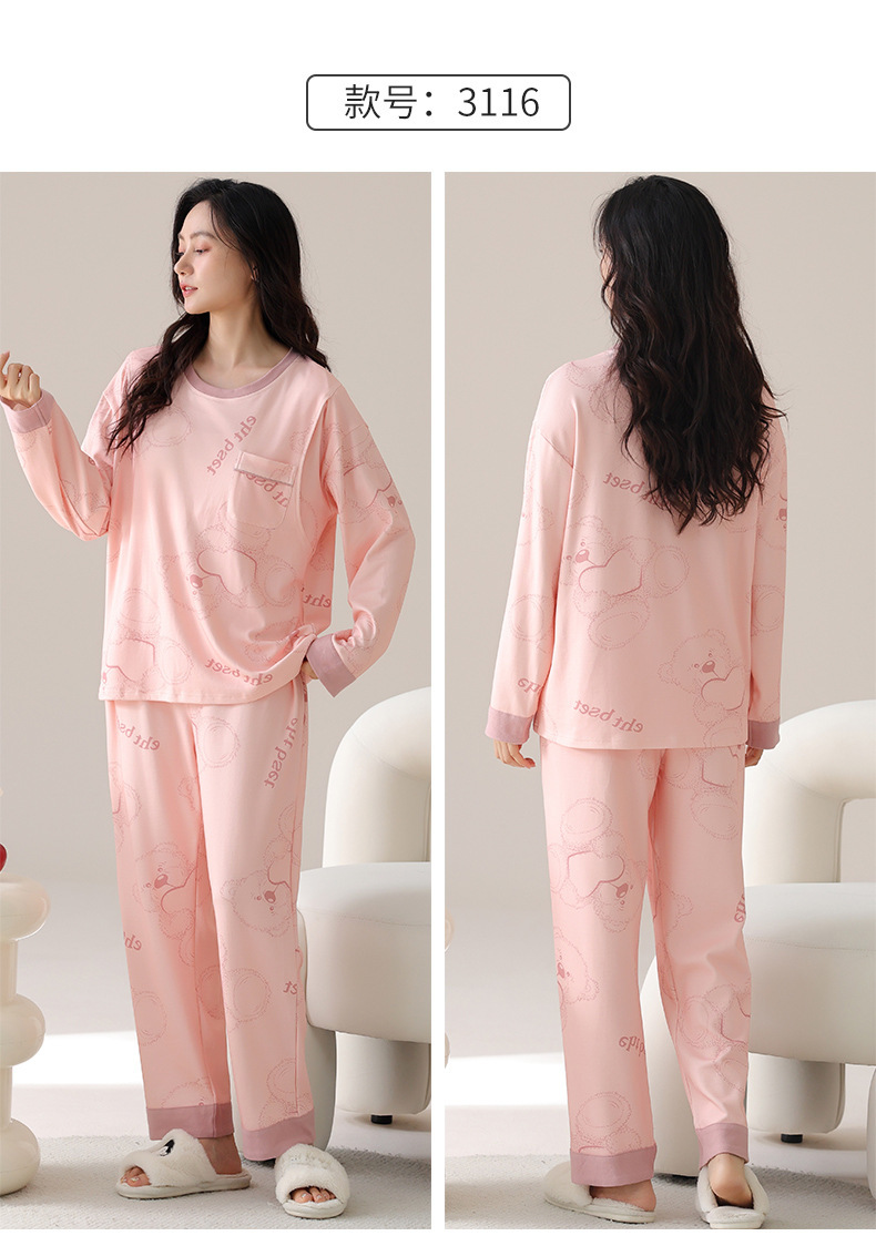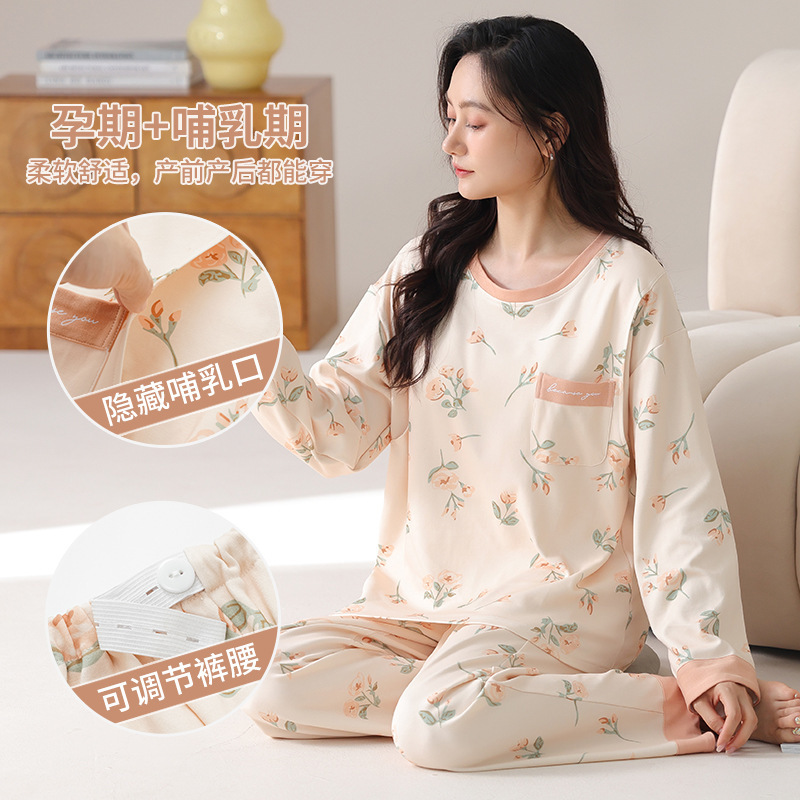 긴팔 임산부 잠옷 여성의 가을과 산후 모유 수유 레저 월 옷 느슨한 비만 임산부 200kg스토어 가기