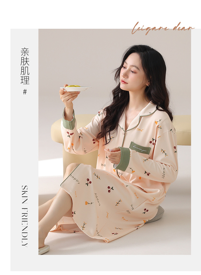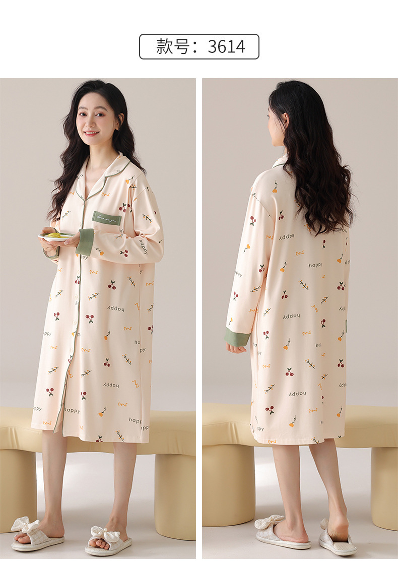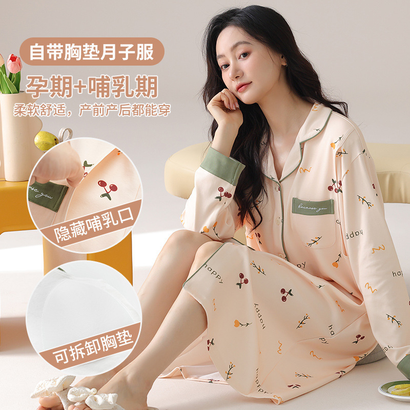 임신 한 여성의 나이트 드레스 긴팔 가을과 겨울 모조 면화 가슴 패드 문 원피스 신선한 스타일 카디건 캐주얼 원피스 가진 여성 원피스 원피스스토어 가기