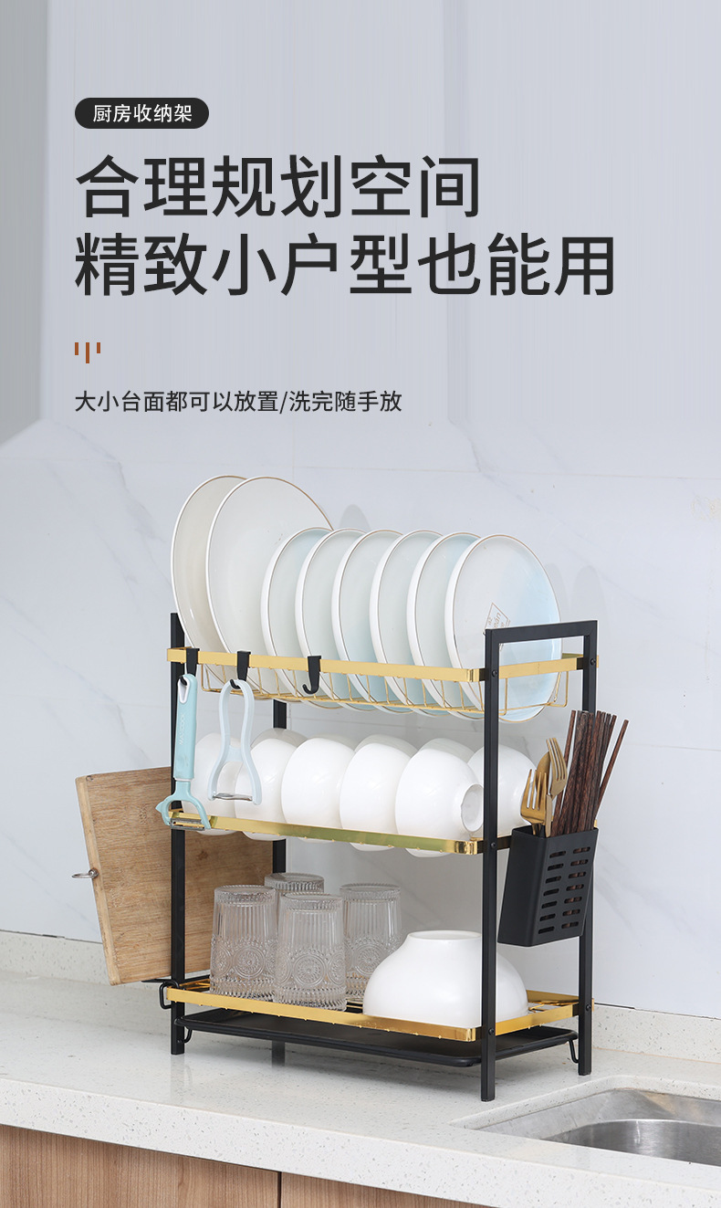 주방 요리 배수 랙 더블 레이어 보울 및 젓가락 스토리지 랙 식기 보관 랙 배수 바구니 싱크 싱크 접시 랙