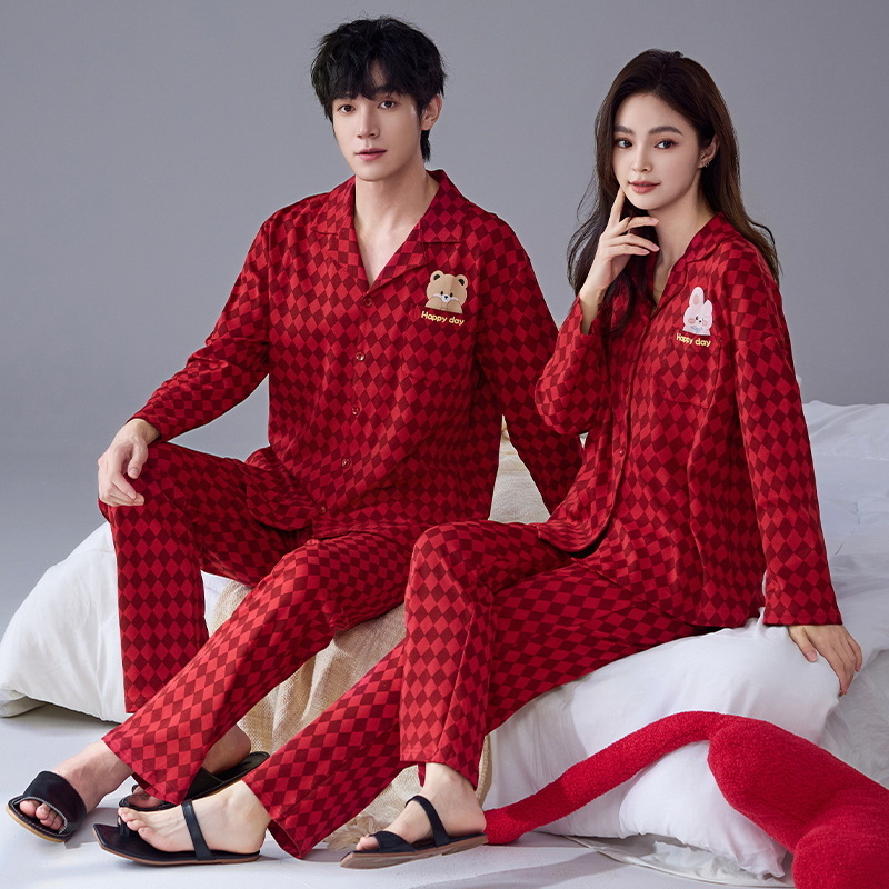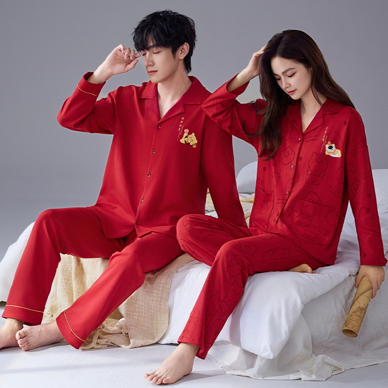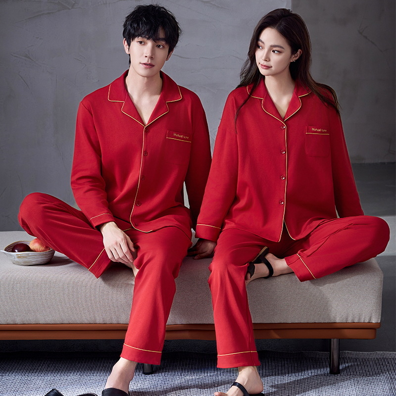 클래스 A 항균 100% 순면 잠옷 결혼식 신혼부부 세트 가을과 겨울 긴 소매 빨간 집 옷스토어 가기