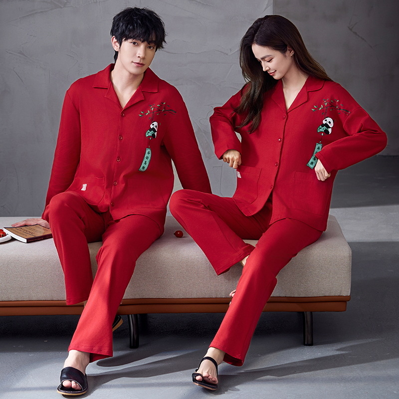 클래스 A 항균 100% 순면 잠옷 결혼식 신혼부부 세트 가을과 겨울 긴 소매 빨간 집 옷