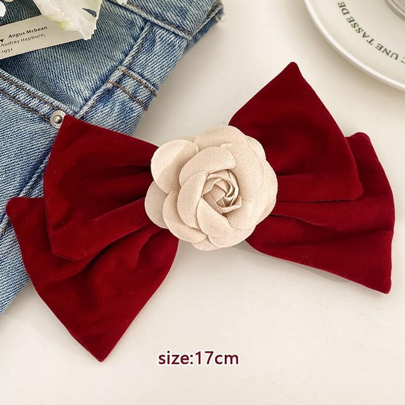 빈티지 벨벳 활 머리핀 가을과 겨울 머리 머리 클립 새해 머리 장식 검은 색과 빨간색 머리핀 여성의 새해 머리 액세서리