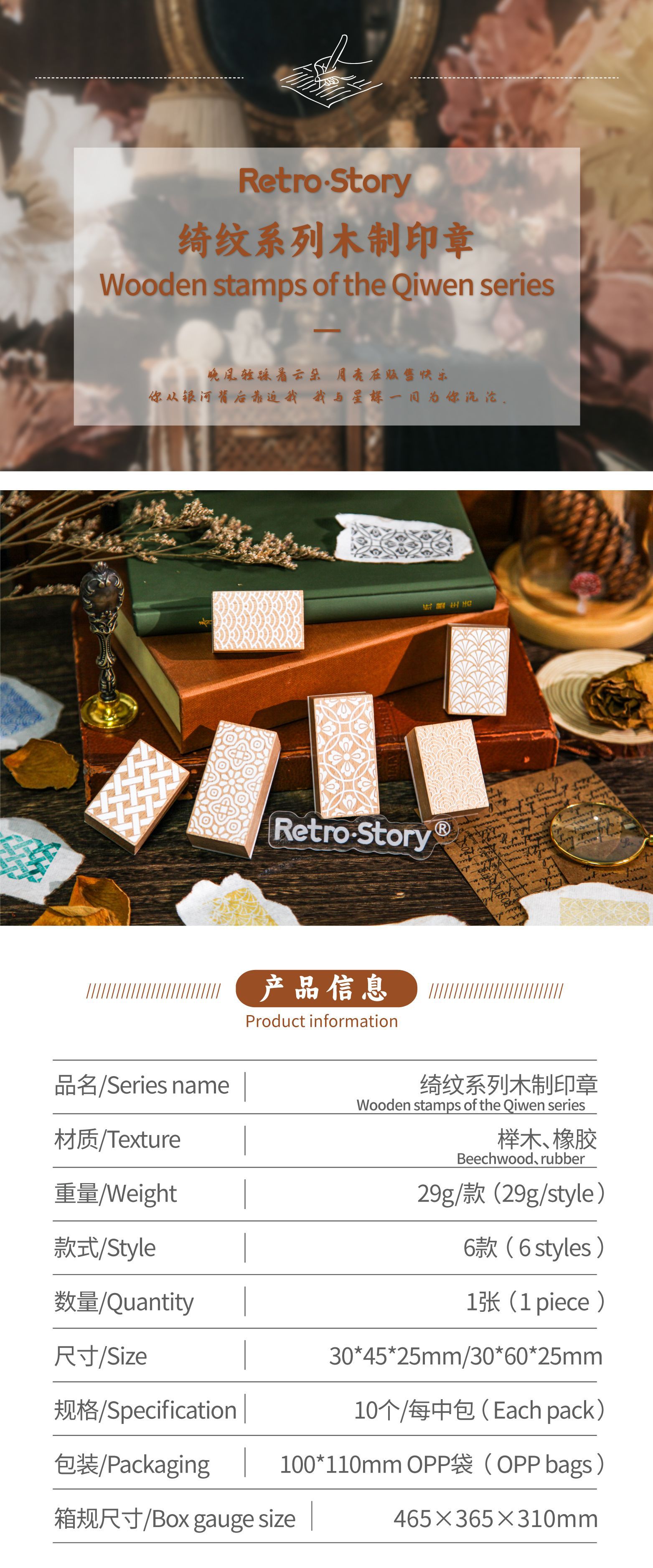 RetroStory 패턴 나무 핸드북 인쇄 크리 에이 티브 복고풍 DIY 재료 장식 기본 핸드북 스탬프