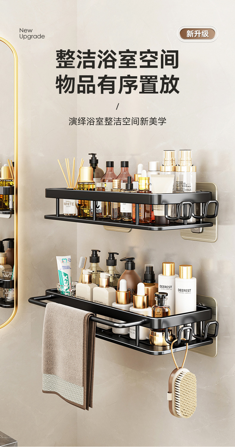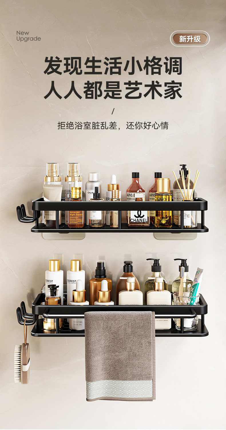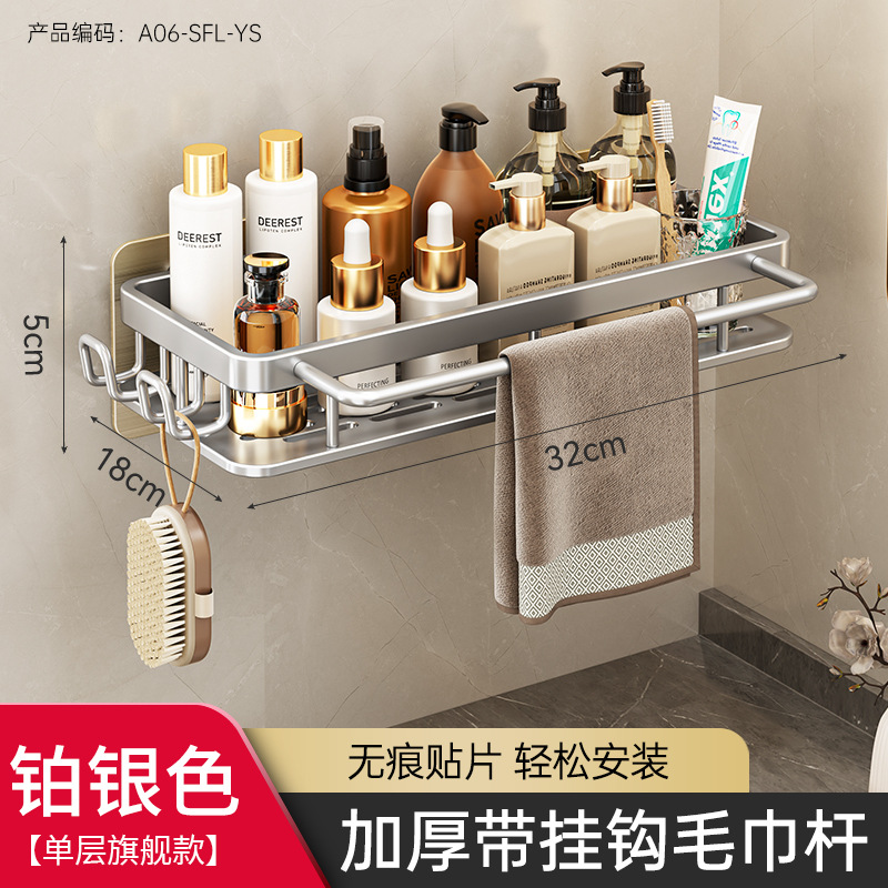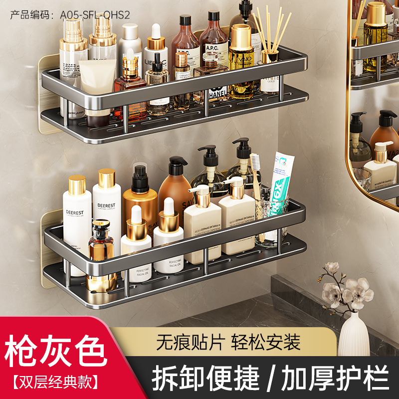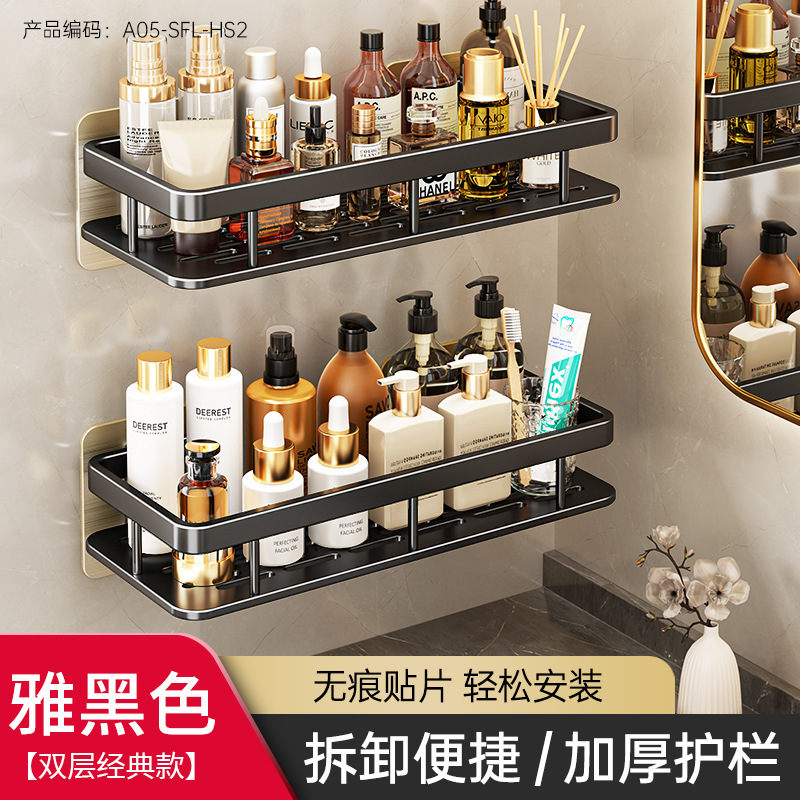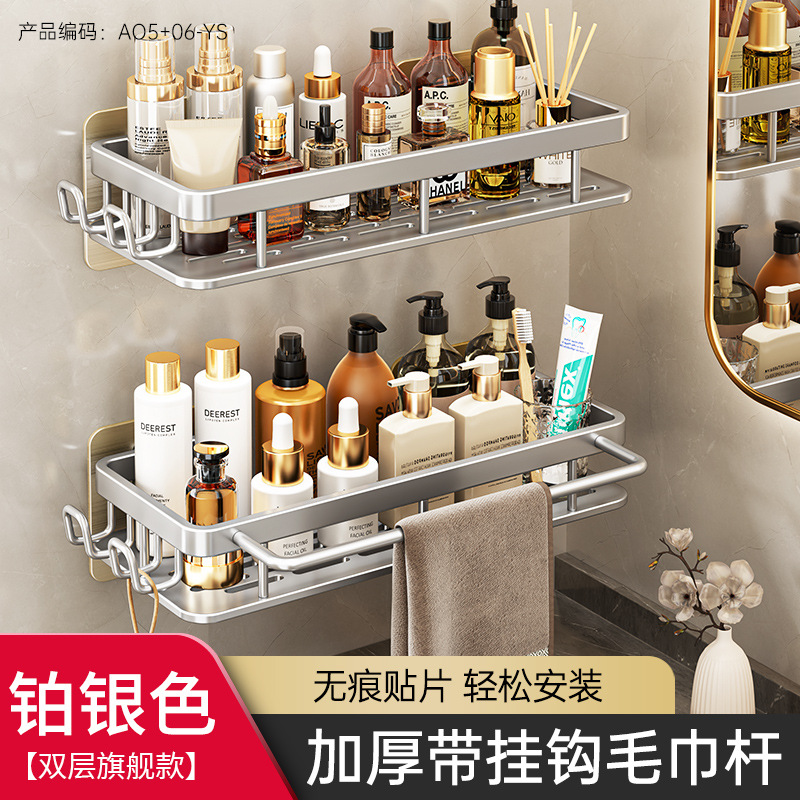 免打孔卫生间置物架浴室架子厕所洗手间洗漱台用品壁挂墙上收纳架  免打孔卫生间浴室置物架壁挂式厕所洗手间洗漱台卫浴墙上  卫生间置物架浴室免打孔四方篮洗漱台墙壁上太空铝收纳长