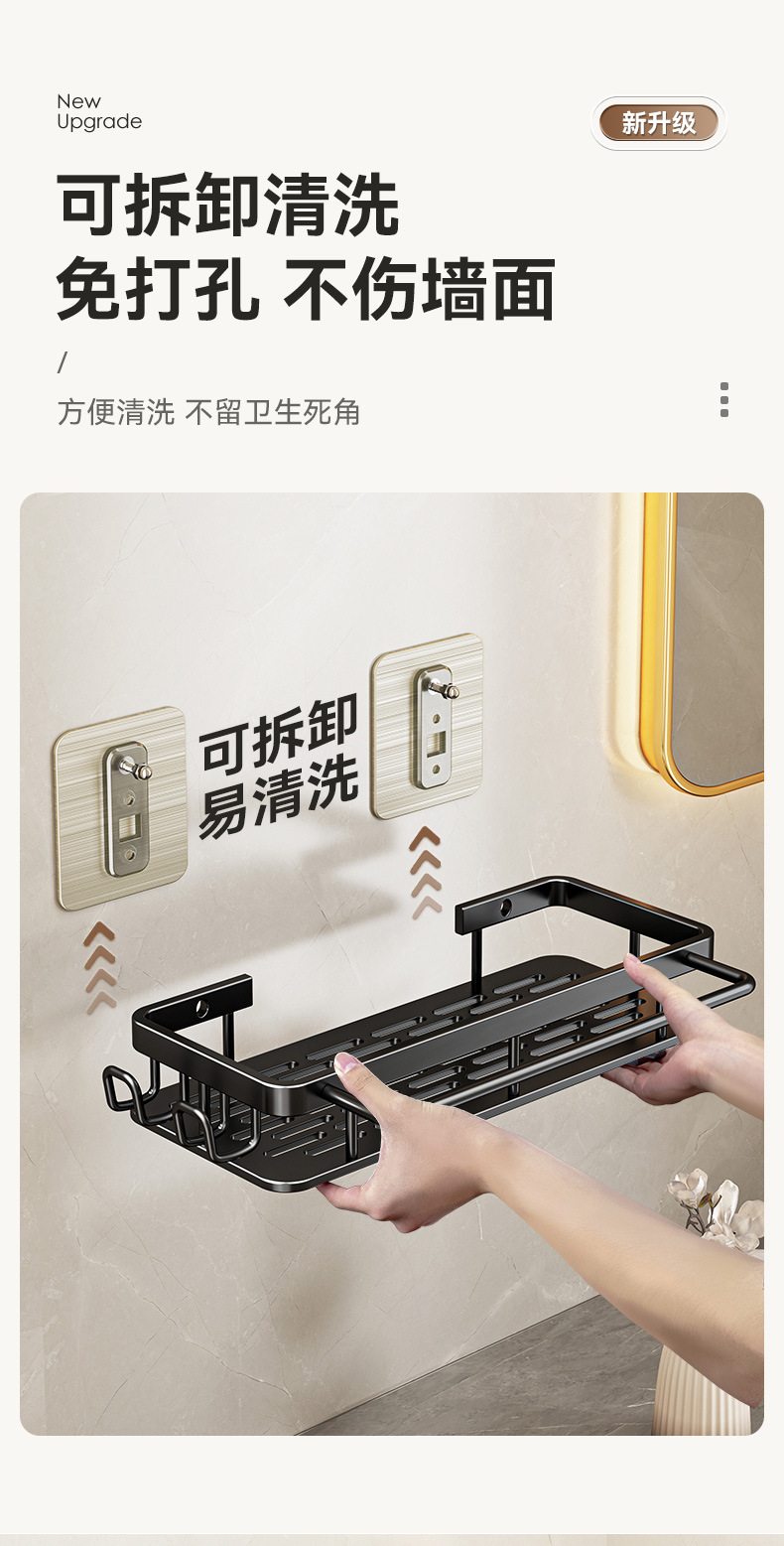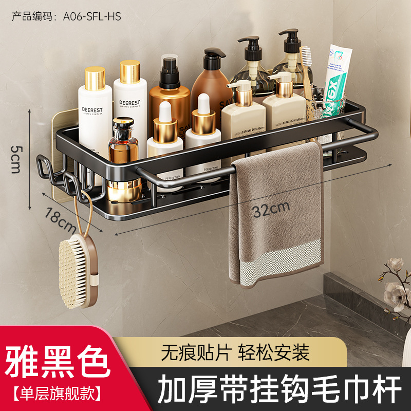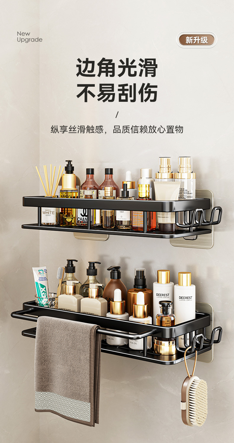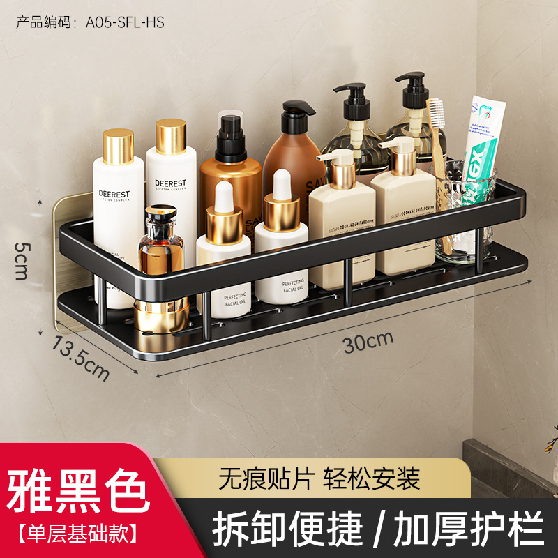 免打孔卫生间置物架浴室架子厕所洗手间洗漱台用品壁挂墙上收纳架  免打孔卫生间浴室置物架壁挂式厕所洗手间洗漱台卫浴墙上  卫生间置物架浴室免打孔四方篮洗漱台墙壁上太空铝收纳长